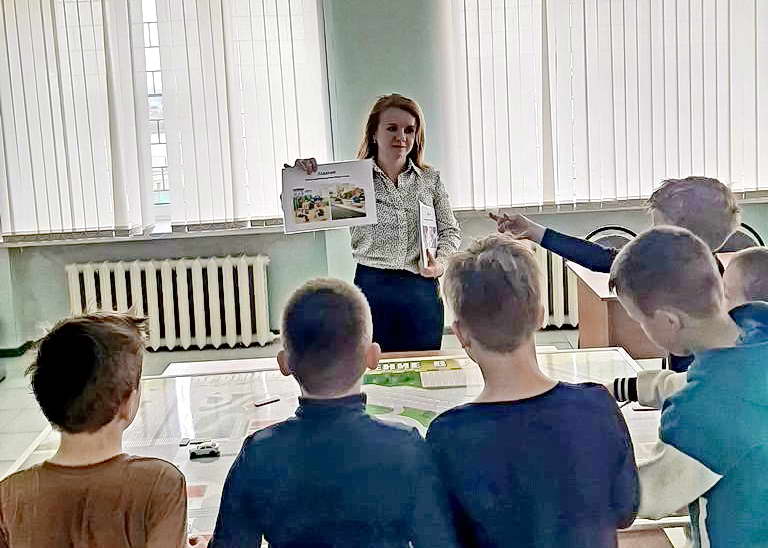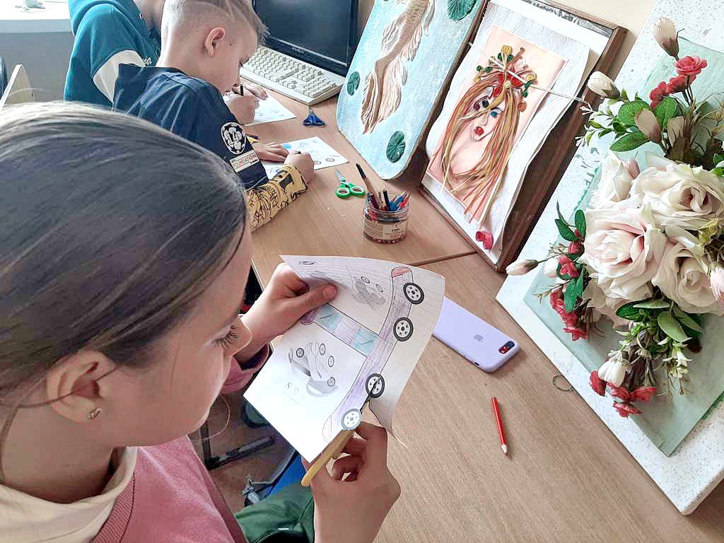 Помимо занятий в Автогородке, учащиеся отвечали на вопросы теоретической части ПДД, выявляли нарушения на магнитной доске и изучали значения различных дорожных знаков. В качестве сувенира о посещении Автогородка и для развития моторики они изготовили бумажную машинку.