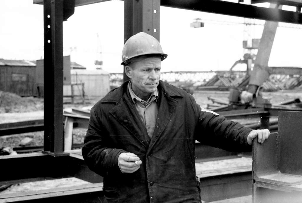 Коммунист Семен Романович Жуков руководит бригадой монтажников из МУ-27 «Спецстальконструкции», занятой на укрупнении ферм с консолями конвейера корпуса № 4 «Атоммаша». За трудовые успехи он неоднократно награждался знаками «Победитель социалистического соревнования», за строительство промышленных предприятий в г. Челябинске награжден медалью «За трудовую доблесть». На снимке: С.Р. ЖУКОВ.
