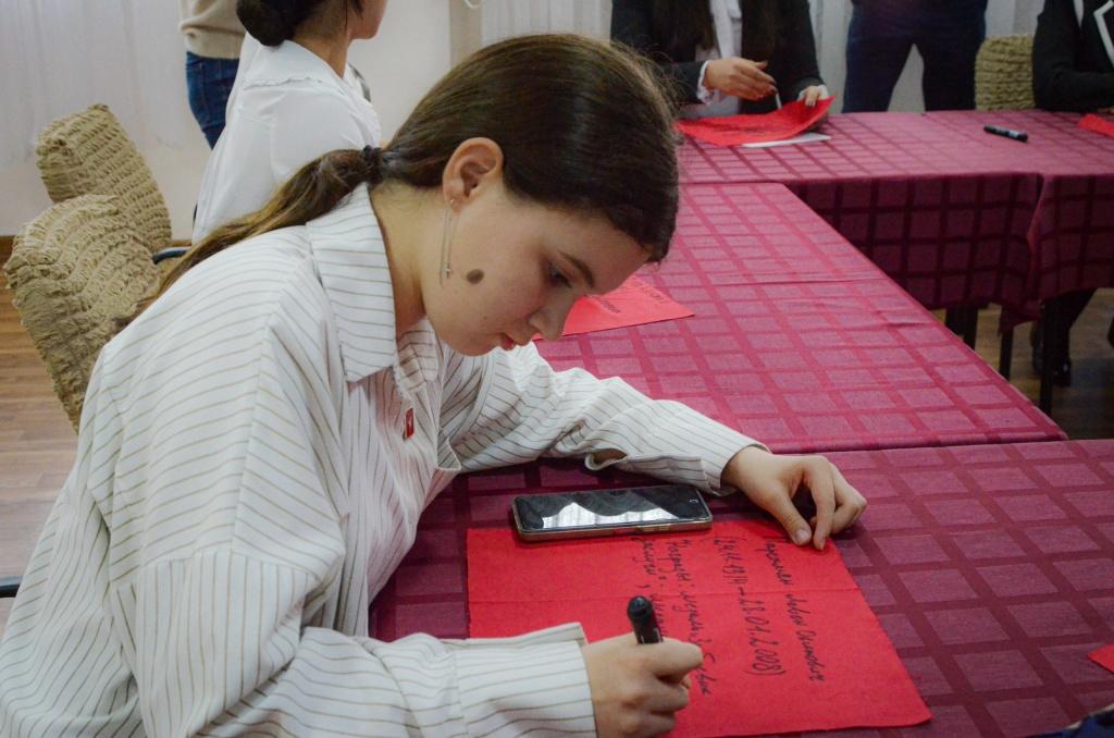 В Волгодонске акция «Полотно Победы» стартовала 8 апреля в Первичном отделении ДК «Октябрь». Руководители городской администрации, Волгодонской городской Думы, Общественной палаты и образовательных учреждений совместно с активистами Движения Первых оставили свои надписи на будущем Полотне Победы.