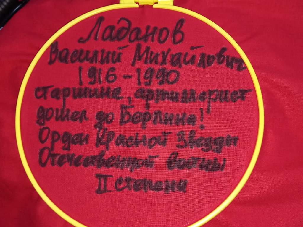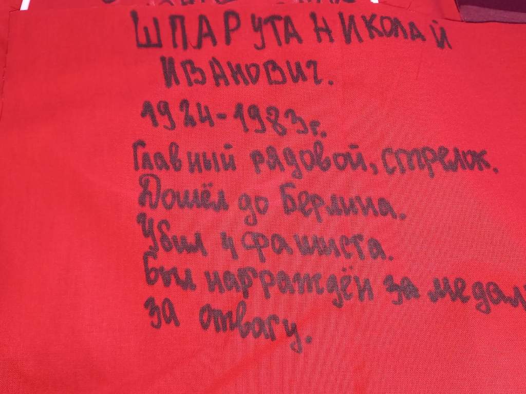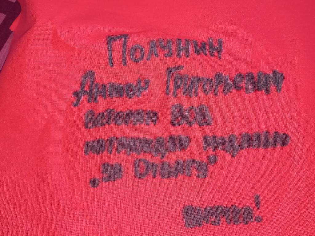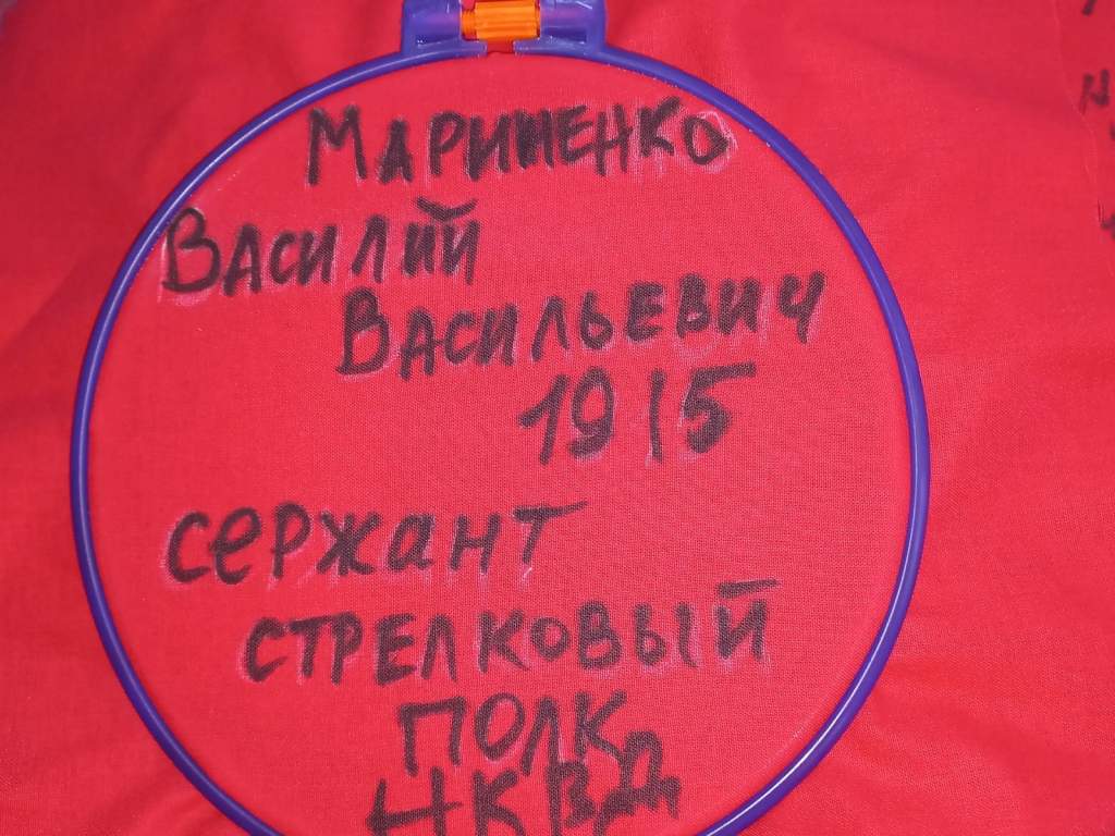 Глава Администрации Волгодонска Юрий Мариненко оставил памятную запись на кумаче и рассказал о своем деде Василии Васильевиче Мариненко (1915 года рождения), который служил сержантом в стрелковых полках НКВД и пропал без вести в 1943 году во время Сталинградской битвы.