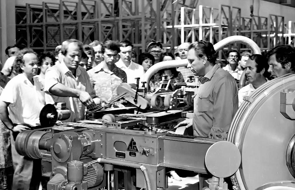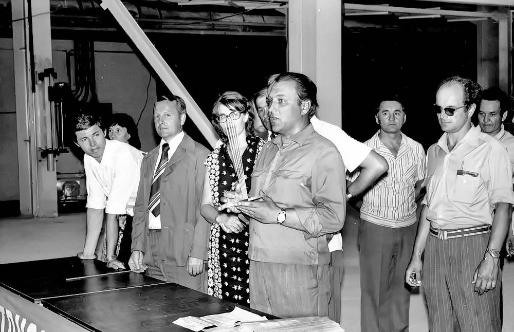 Начальник цеха Б. Бутковский рассказал об атмосфере деловитости, твор чества и энтузиазма коллектива СМУ-16 «Заводстроя», монтажников «Минмонтажспецстроя» и заводчан, что помогло досрочно изготовить так нужную для «Атоммаща» продукцию.