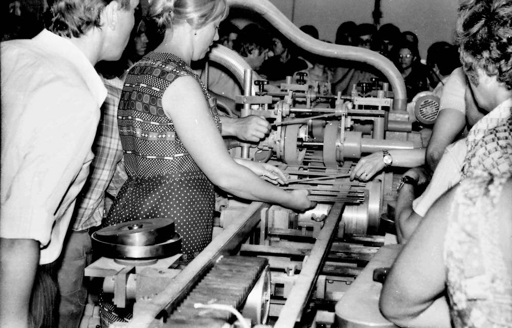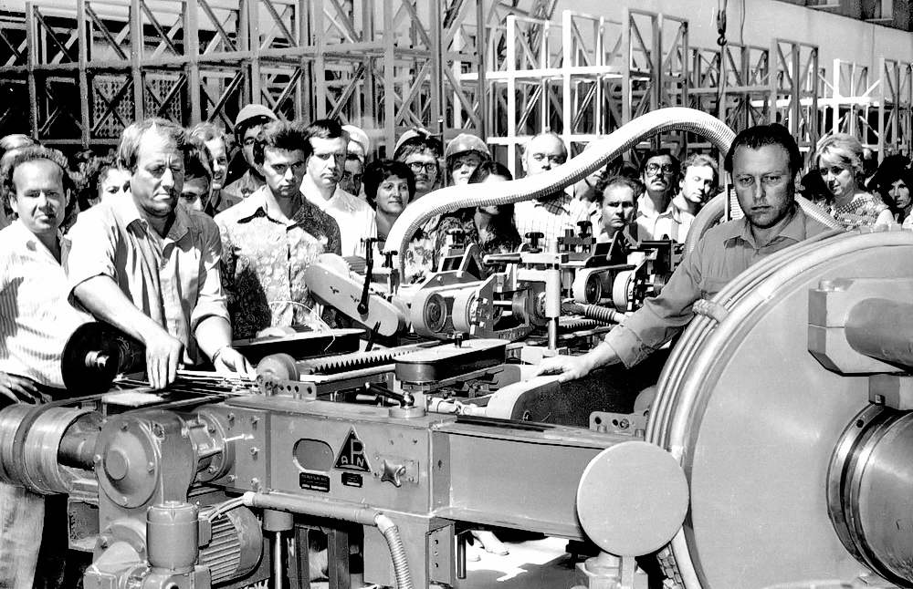 В установку заправлена обмазка, включается автоматика и… вот они, первые атоммашевские электроды в руках у рабочих.