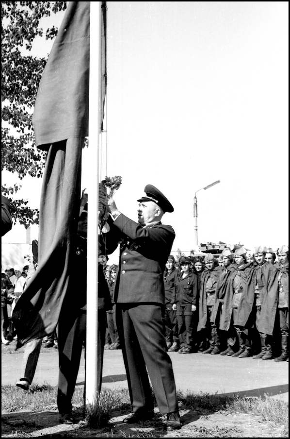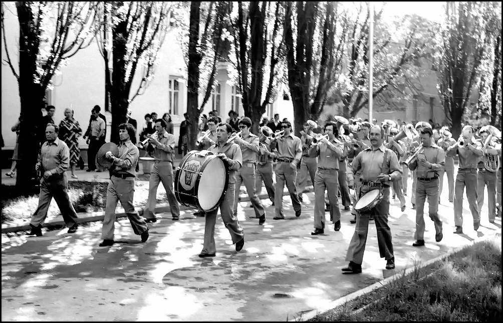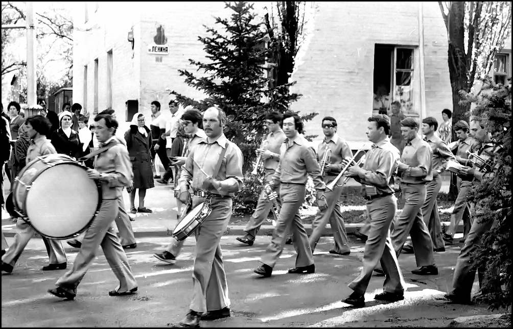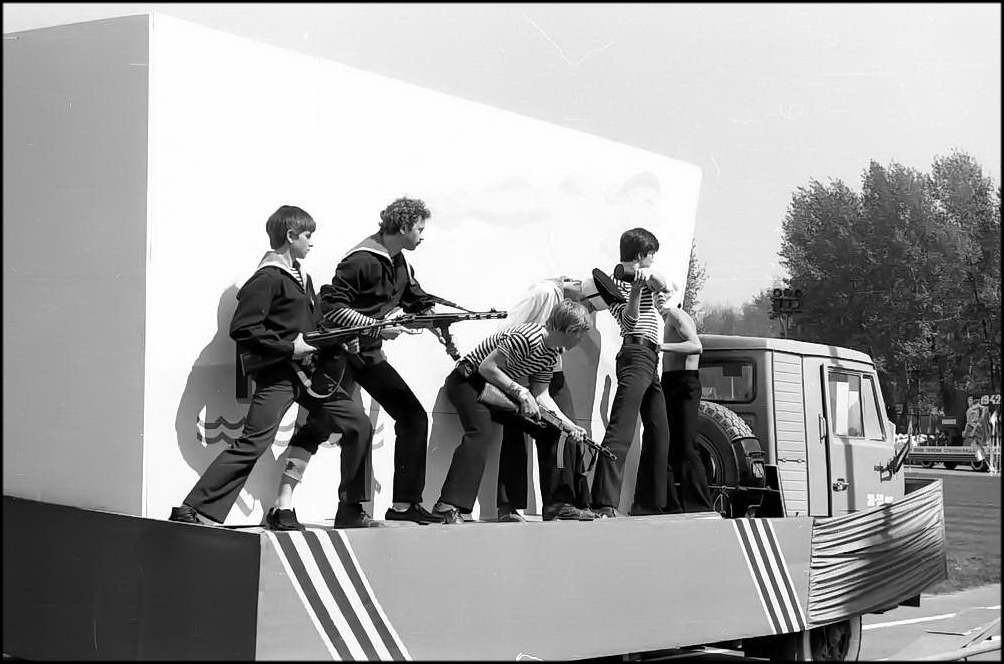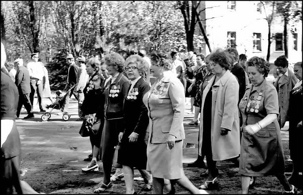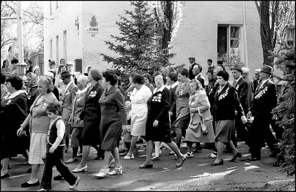 Это скандируют участники манифестации. На трибуну поднимаются члены бюро ГК КПСС, ГК ВЛКСМ, ветераны партии, Великой Отечественной войны, передовики производства.