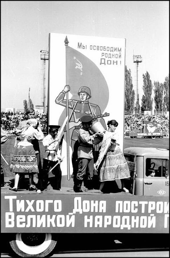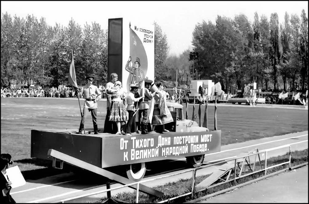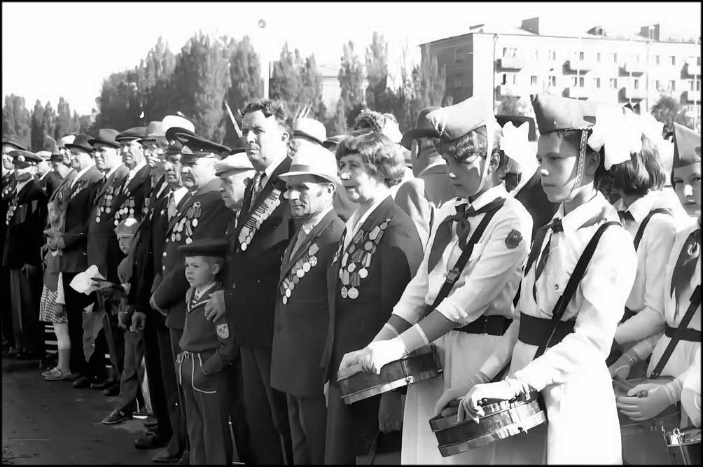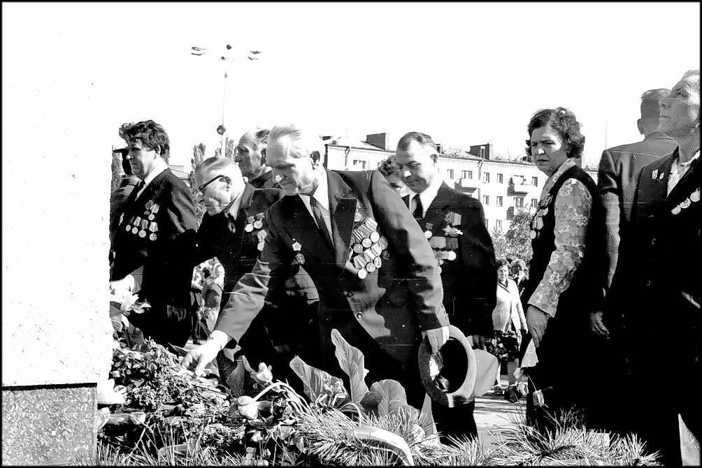 К обелиску Победы ,возлагают цветы руководители города, предприятий и организаций, ветераны и школьники. Цветы, цветы, цветы… Это— вам, погибшие за счастье наше, это — вам, выжившие, сквозь пули прошедшие, наши седые солдаты войны! В каждом сердце сегодня звучит клятва: помним, никогда не забудем, вечно будем беречь то, что завоевано вами! Стройными шеренгами стоят ветераны войны. На груди их блестят награды — Родины. Волгодонск вместе со всей нашей страной празднует Победу. С приветственным словом к ветеранам ] обратился председатель исполкома горсовета В. А.Куликов.