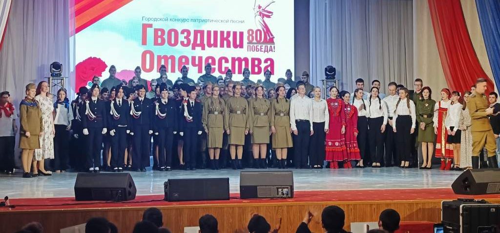 Во дворце культуры «Октябрь» прошел городской фестиваль-конкурс патриотической песни «Гвоздики Отечества». Яркое событие, приуроченное к 80-летию Победы советского народа в Великой Отечественной войне 1941–1945 годов, было организовано отделом по молодежной политике Администрации Волгодонска.