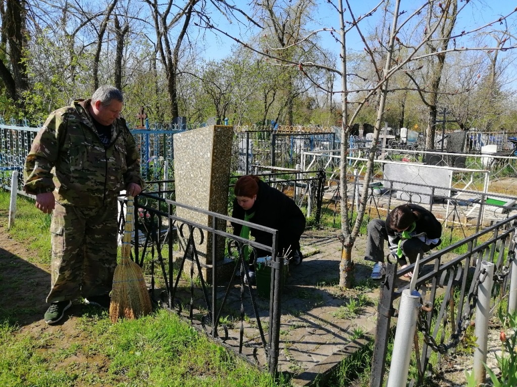 Активисты военно-патриотического клуба «Будущее России» Волгодонского педагогического колледжа и их руководитель Светлана Кирсанова совместно с представителями Волгодонской городской организации «Российского Союза ветеранов Афганистана» Александром Кирилловым и Александром Лаптевым провели благотворительную акцию «Нет забытых могил».