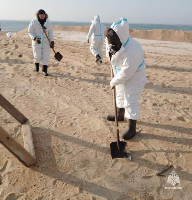 Как сообщило ведомство, всего с начала работ очистили 423 километра берега, собрали почти 155 тысяч тонн загрязненного песка и грунта, на площадки временного хранения вывезли более 110 тысяч тонн.