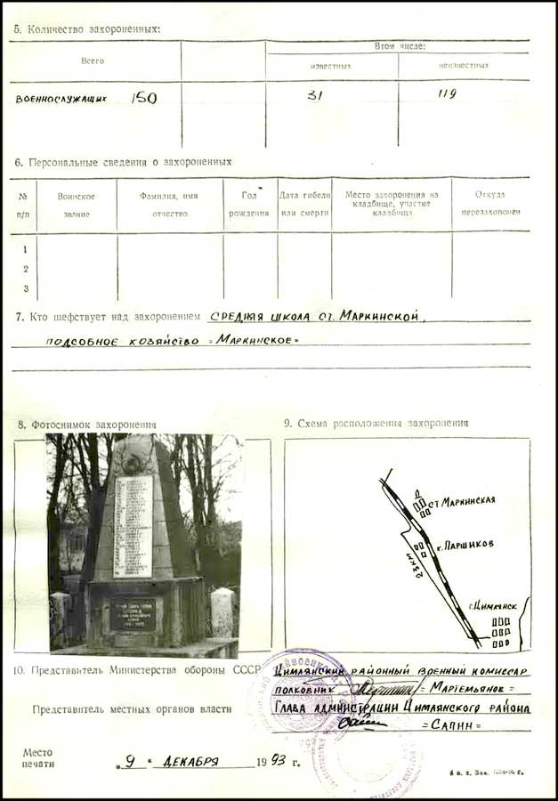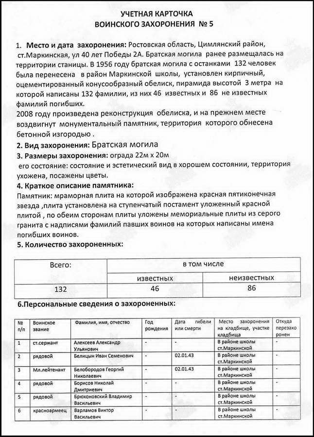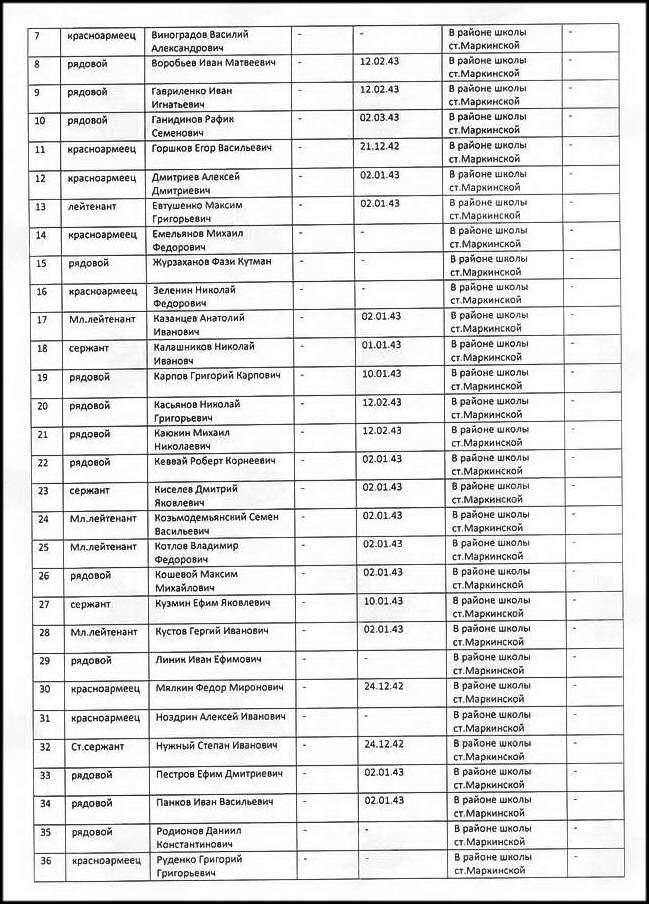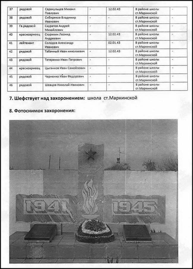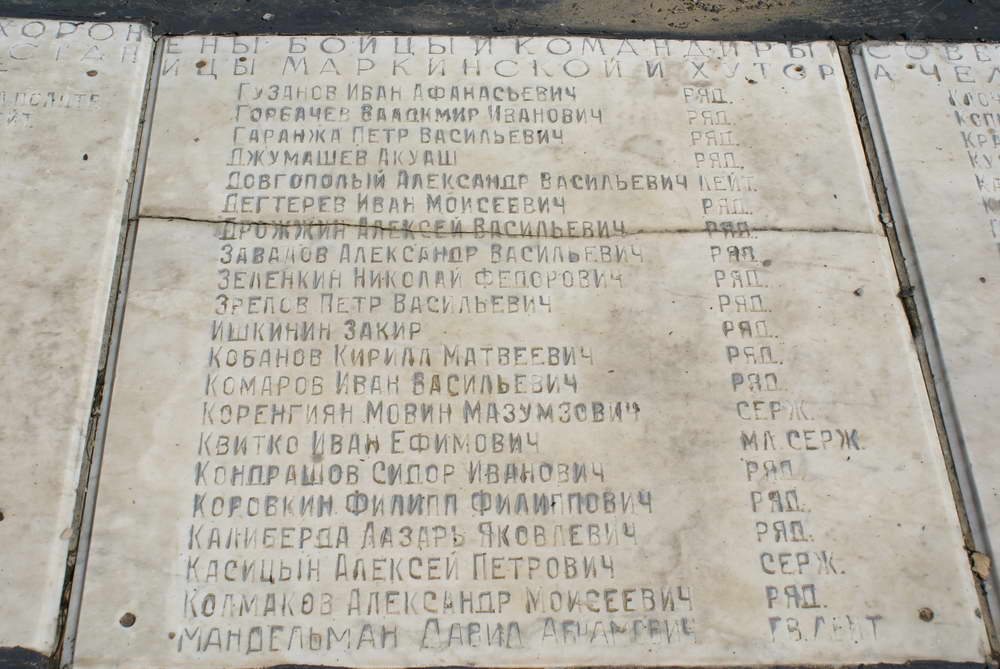 Вот эти плиты были на братской могиле станицы Калининской, фото 6.09.2008 года. На этих плитах хорошо видны слова — станицы Маркинской…?