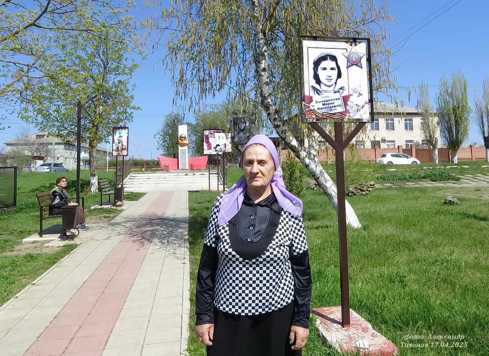 На снимке: Евгения Петровна Скирдина — дочь Марии Васильевны (снимок слева) и Петра Авиловича (снимок справа) Быкадоровых — фронтовиков, поженившихся 9 мая 1945 года. Сама Евгения Петровна всю жизнь работала здесь виноградарем.