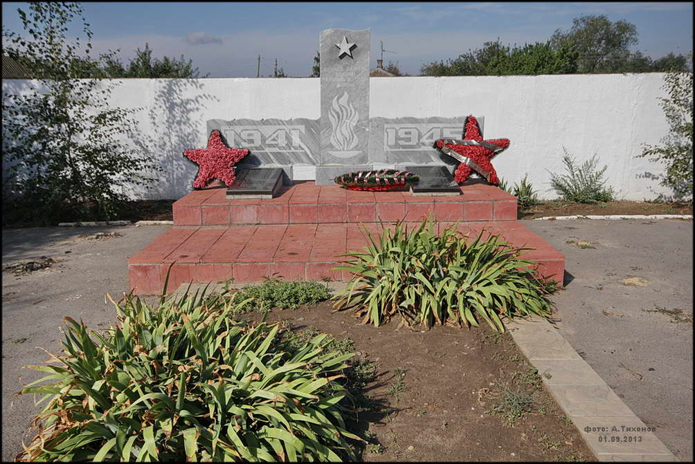 В боях за освобождение п. Нагорный, 2 января 1943 года, пали смертью 13 воинов Красной Армии, Имена их остались неизвестны. Из них: офицеров – 1, сержантов и солдат – 12. С лицевой стороны стелы имеется табличка с надписью «Вечная слава героям, павшим в боях за нашу Родину 1941-1945 гг.» Стела стоит на берегу Цимлянского водохранилища и далеко видна с моря.