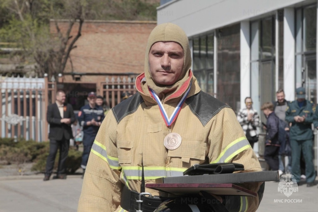 Вторым к финишу пришел его коллега из ЛНР Николай Дудник, уступив лидеру 53 секунды. На третьем месте – пожарный Виктор Лысенко из 8 ПСО ГУ МЧС России по Ростовской области (станица Советская), с результатом в 6 минут 4 секунды.