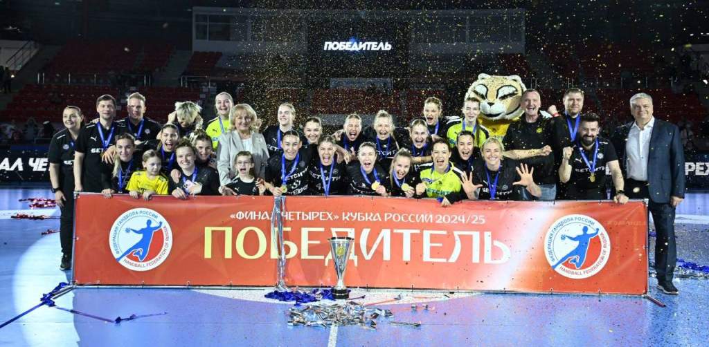 «14-й кубок наш!!!» – так отреагировал в своем телеграмм-канале глава региона Юрий Слюсарь на победу наших гандболисток в финале четырех Кубка России 2024/25 в Астрахани.