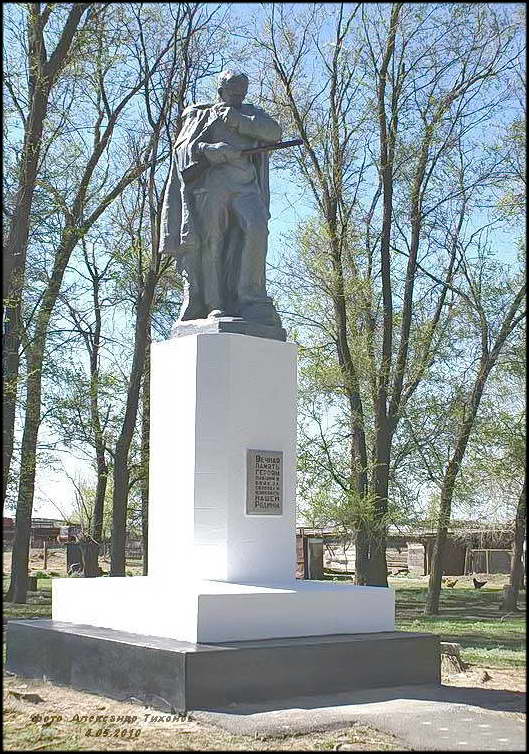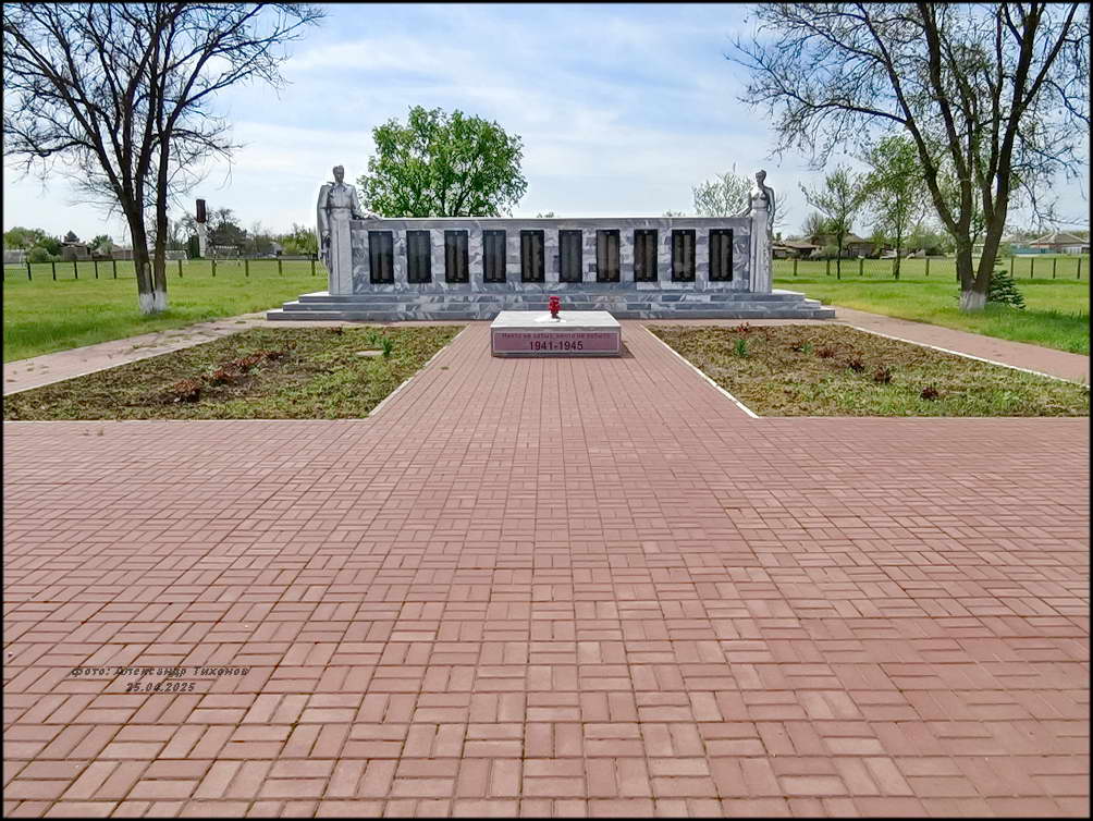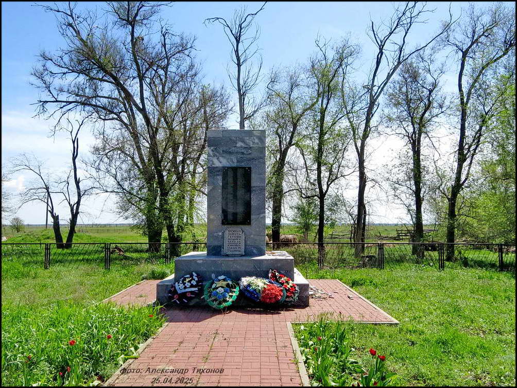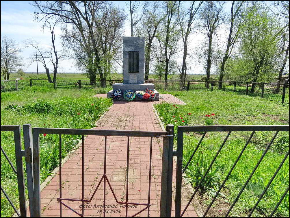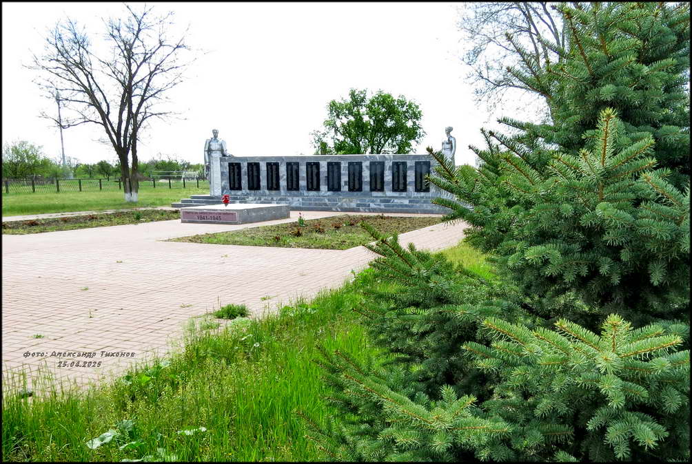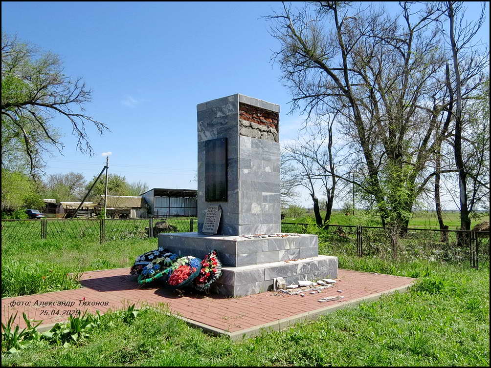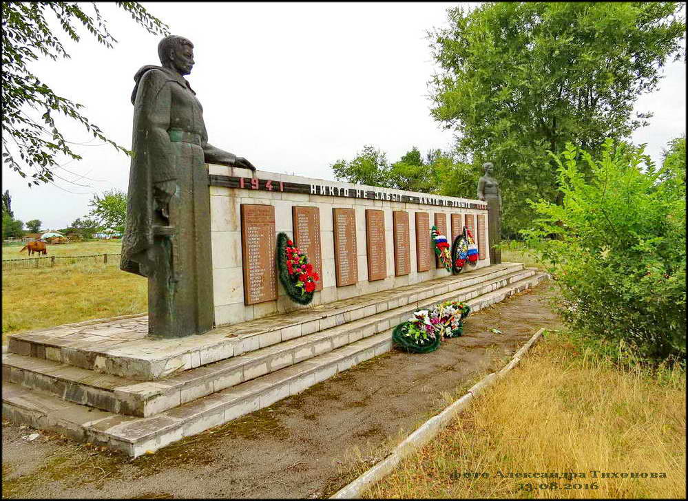 Но вот память о павших в боях Великой Отечественной войны за хутор чтят свято. Братская могила воинов Красной Армии в хорошем состоянии. После проведённой реставрации и ремонта здесь на братской могиле вместо неприметного обелиска установлен величественный памятник. Сколько здесь захоронено точно неизвестно. В списке 68 имён, чьи имена известны (на 2014 г), хотя на мемориальных плитах их в два раза больше.