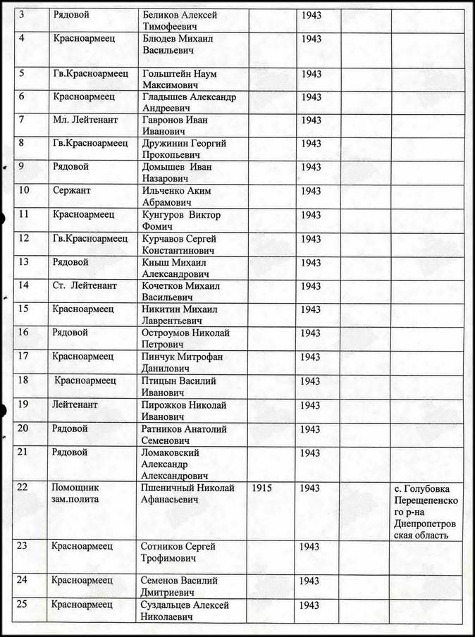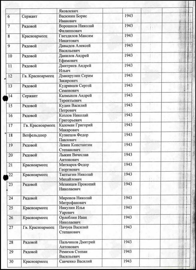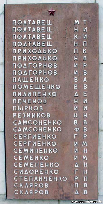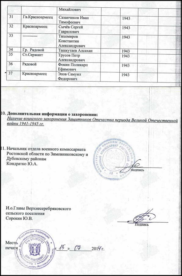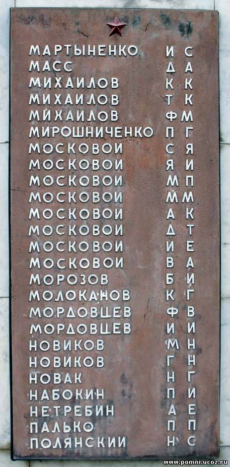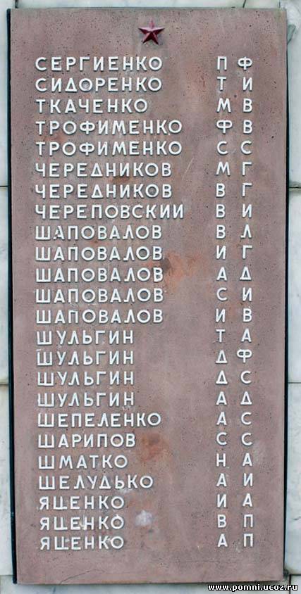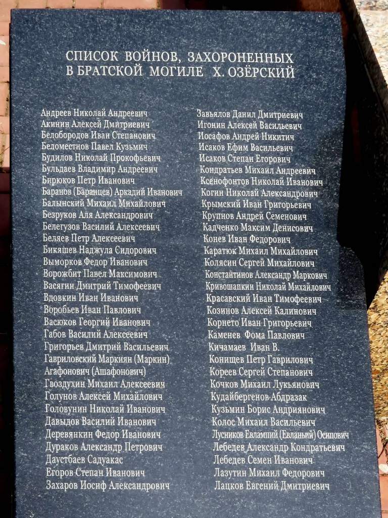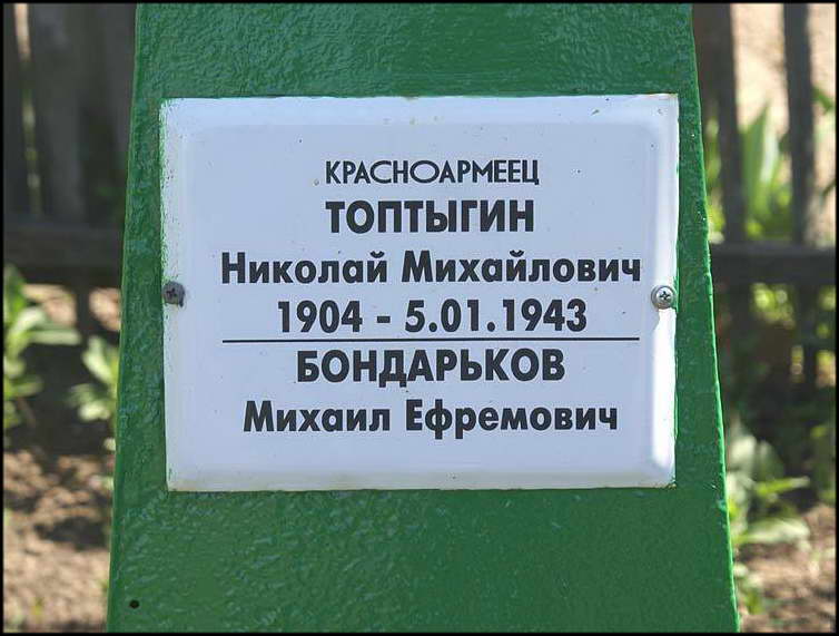 Сколько захоронено здесь воинов точно неизвестно — в списке захоронения 4 фамилии. Это рядовые Королёв Вамилий Александрович, Пузенко Данил Васильевич; мл.сержант Правдюков Иван Сергеевич и ст. сержант Коноплёв Павел Дмитриевич.