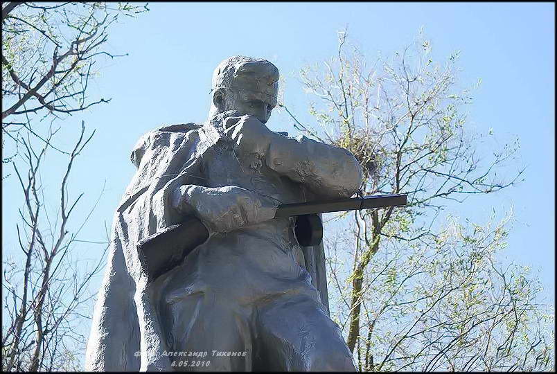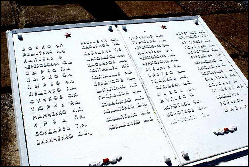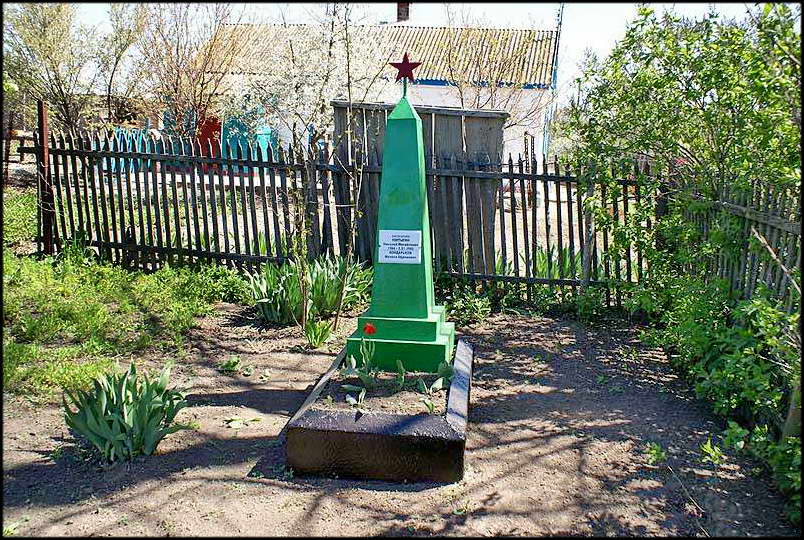 На улице Степной, 13 — во дворе есть могила погибших солдат. Соседка сказала, что здесь захоронены двое, но другие говорят, что раньше на этом обелиске висела табличка со многими именами. фото 2 мая 2010 года.