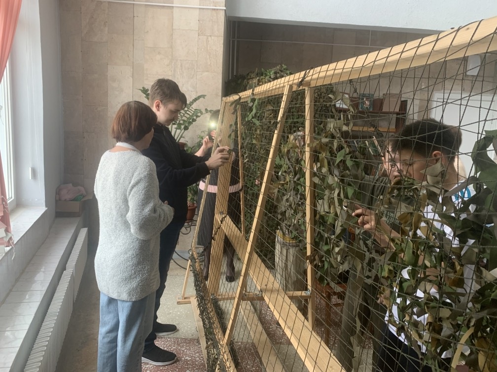 Ребята из РОО «Парус Надежды» вместе с руководителем Надеждой Горбаневой плели маскировочные сети. Ансамбль русской народной песни «Вдохновение» исполнил песни, посвященные военной тематике.