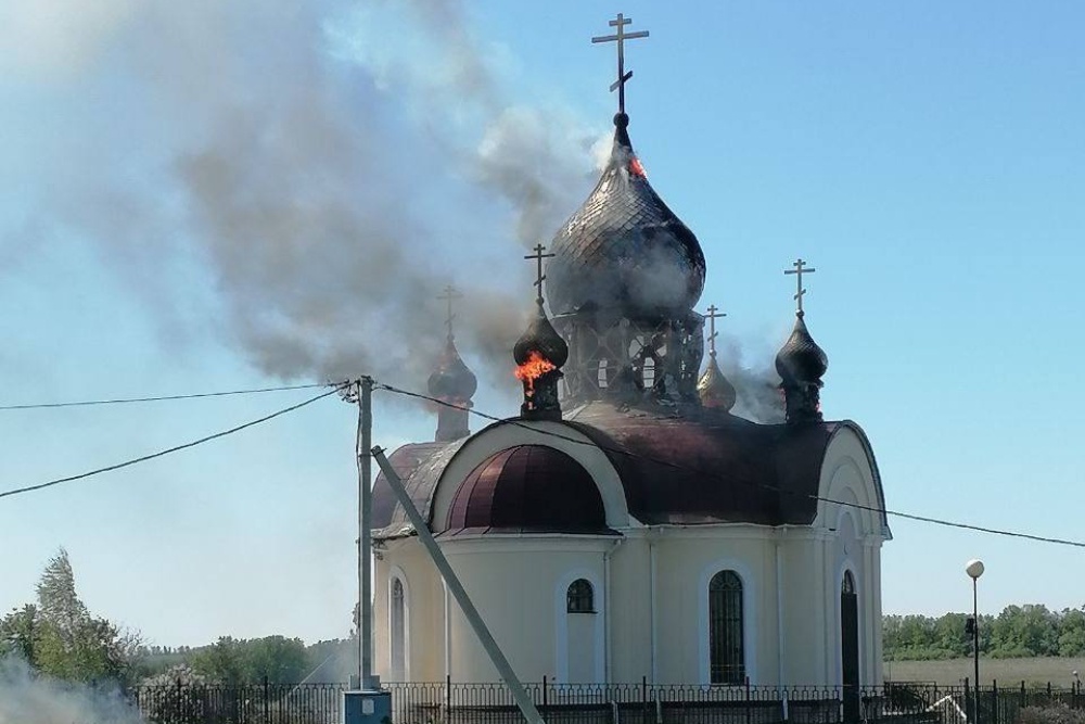Пожар в церкви святого Георгия Победоносца в селе Толоконное Белгородского района начался днем 3 мая после падения на купол украинского дрона.