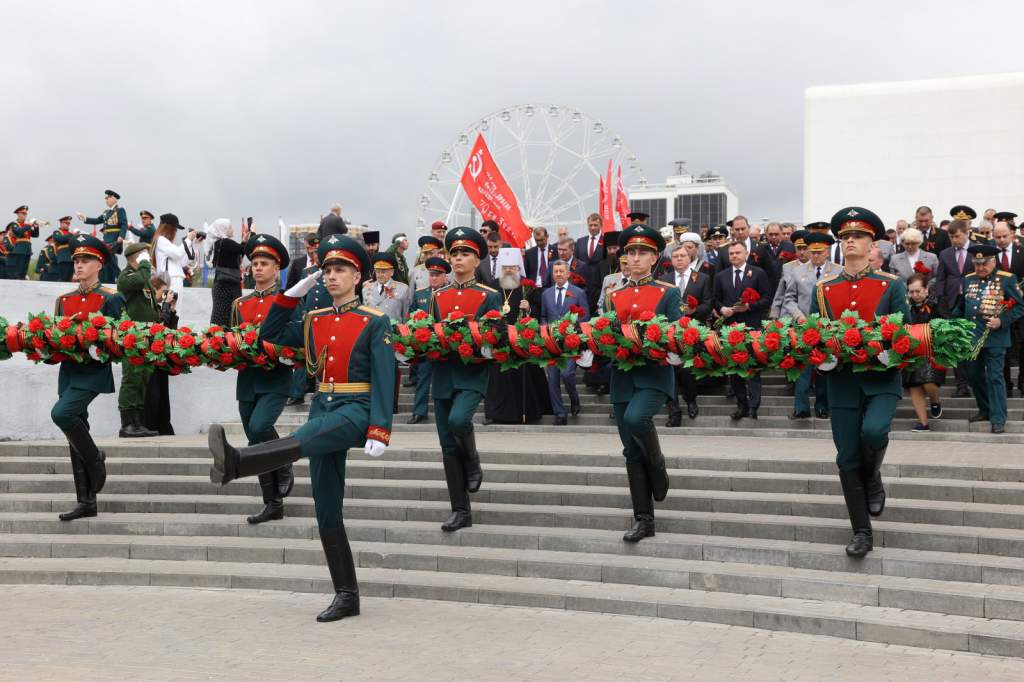 В канун знаковой даты — 80-летия Победы в Великой Отечественной войне — Ростов-на-Дону традиционно стал центром областных памятных мероприятий. 8 мая на Театральной площади у Вечного огня состоялась торжественное возложение венков и цветов, символизирующее глубокую благодарность и незыблемую память о подвиге советского народа.