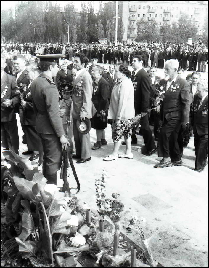 Шествующий впереди духовой оркестр играл боевые марши, под звуки которых в 40-е грозные годы солдаты ходили в атаку. И убеленные сединой ветераны распрямляли грудь, тверже шагали по усеянной цветами дороге. Среди них много тех, кто сражался в этих местах, под Сталинградом. Волгодонцы гордятся героями Сталинградской битвы Ф. А. Пахомовым, А. М. Светлишневым, И. И. Семеновым, М. С. , Семеновой, Н. М. Шелудько. С. В. Шершуновым, Г. М. Бойко, Г. В. Васильевым. П. Е. Калмыковой и другими. П Пройдя сквозь ад войны, они выжили и победили…