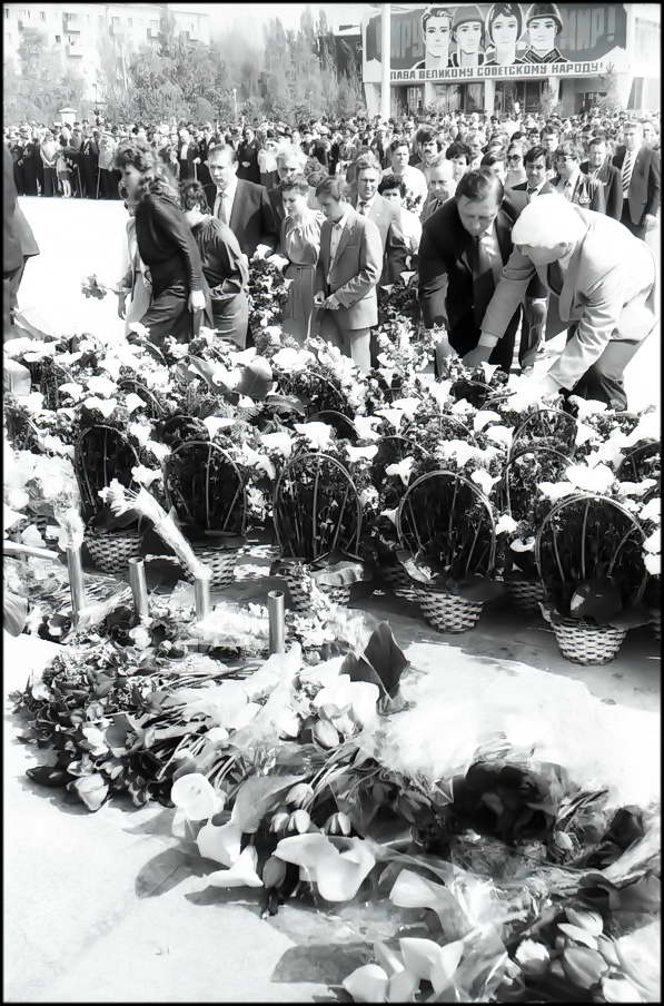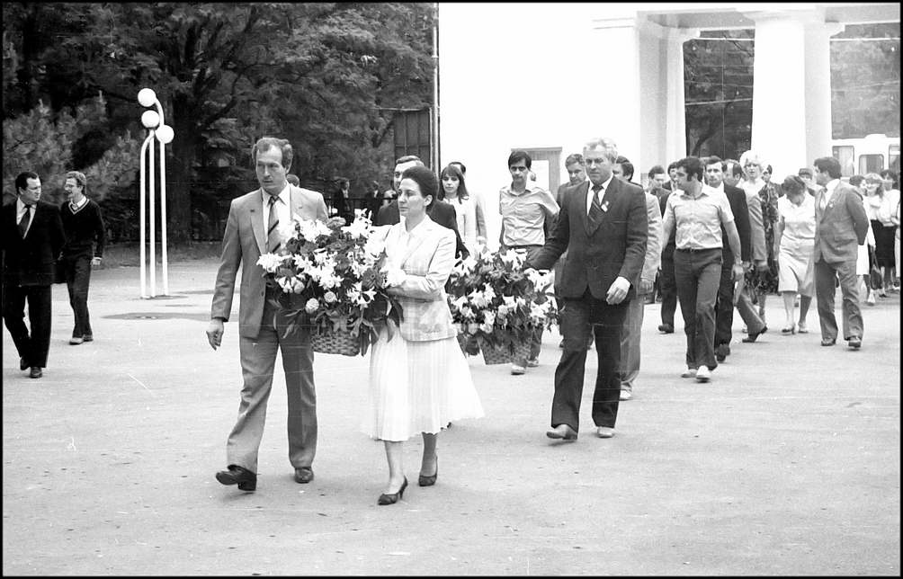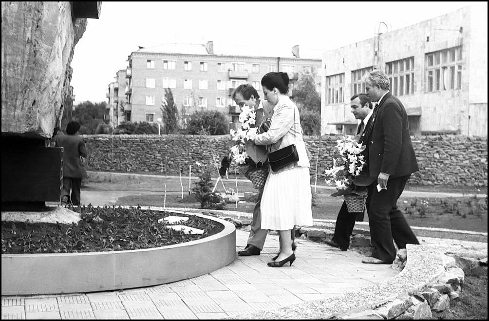 Участники V Фестиваля дружбы молодежи СССР и НРБ возложили цветы к памятнику Ленину и барельефу Георгия Димитрова в сквере советско-болгарской дружбы, носящем его имя. В торжественном ритуале приняли участие представители советской делегации, возглавляемой первым секретарем ЦК ВЛКСМ В. М. Мишиным и представители болгарской делегации, возглавляемой первым сек ретарем ЦК ДКСМ С. Шоповой. В возложении цветов приняли участие секретарь обкома партии П. Кравченко, первый секретарь горкома партии А.Е.Тягливый, председатель исполкома В. А. Куликов, первый секретарь ГК ВЛКСМ А. Ф. Фисунов, представители общественности. В сквере руководителями болгарской и советской делегаций С. Шоповой и ВМ. Мишиным была посажена березка.