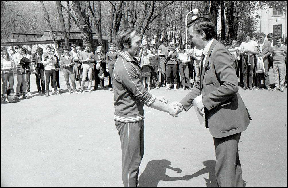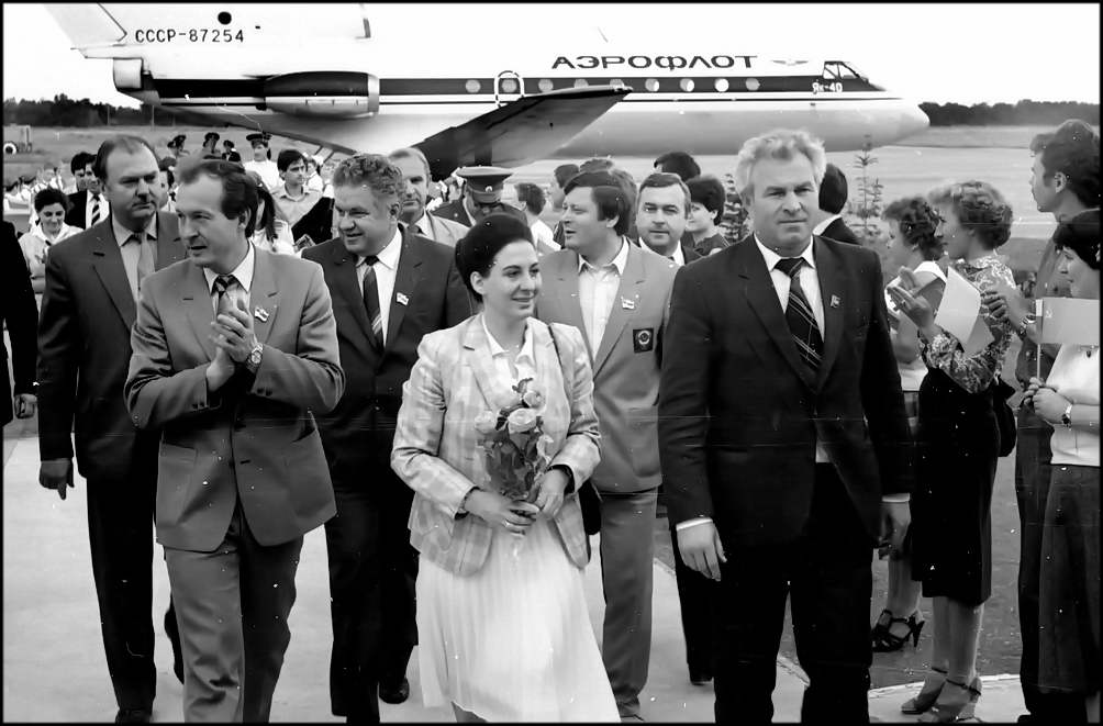 Дорогих гостей встречали в аэропорту первый секретарь горкома партии А. Е. Тягливый, пред- седатель исполкома В. А. Куликов, секретарь горкома партии Г.Г.Персидский, первый секретарь горкома комсомола А.Ф.Фисунов, комсомольские и пионерские активисты, представители трудящихся.