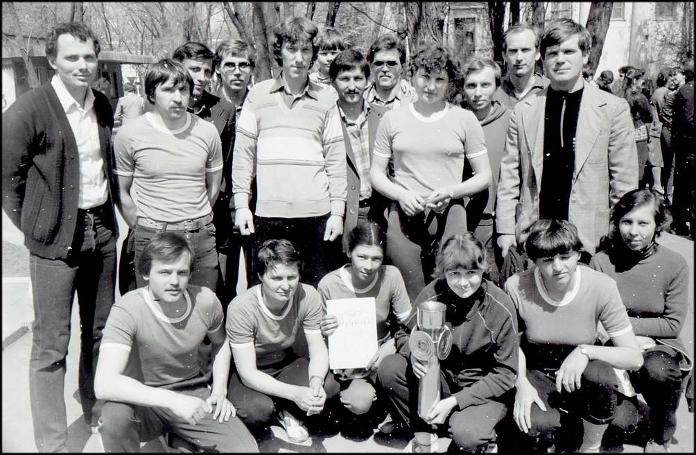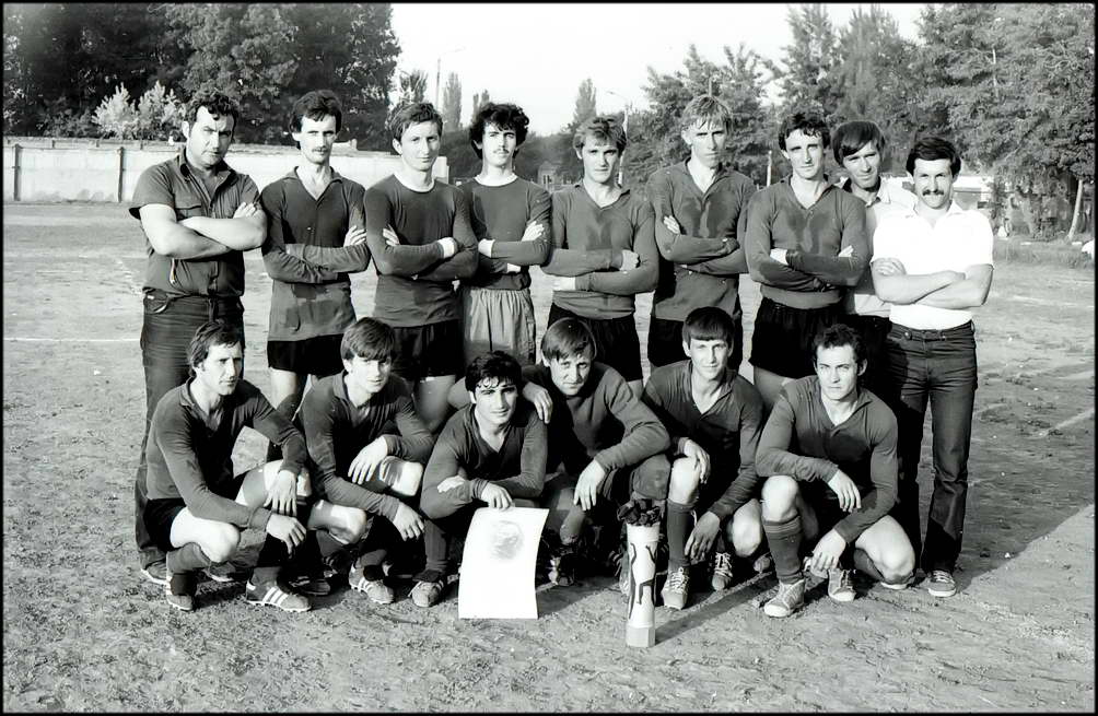 А. ЗАБРОВСКИИ. На снимке: команда «Строитель» — обладательница кубка «Волгодонской правды».
