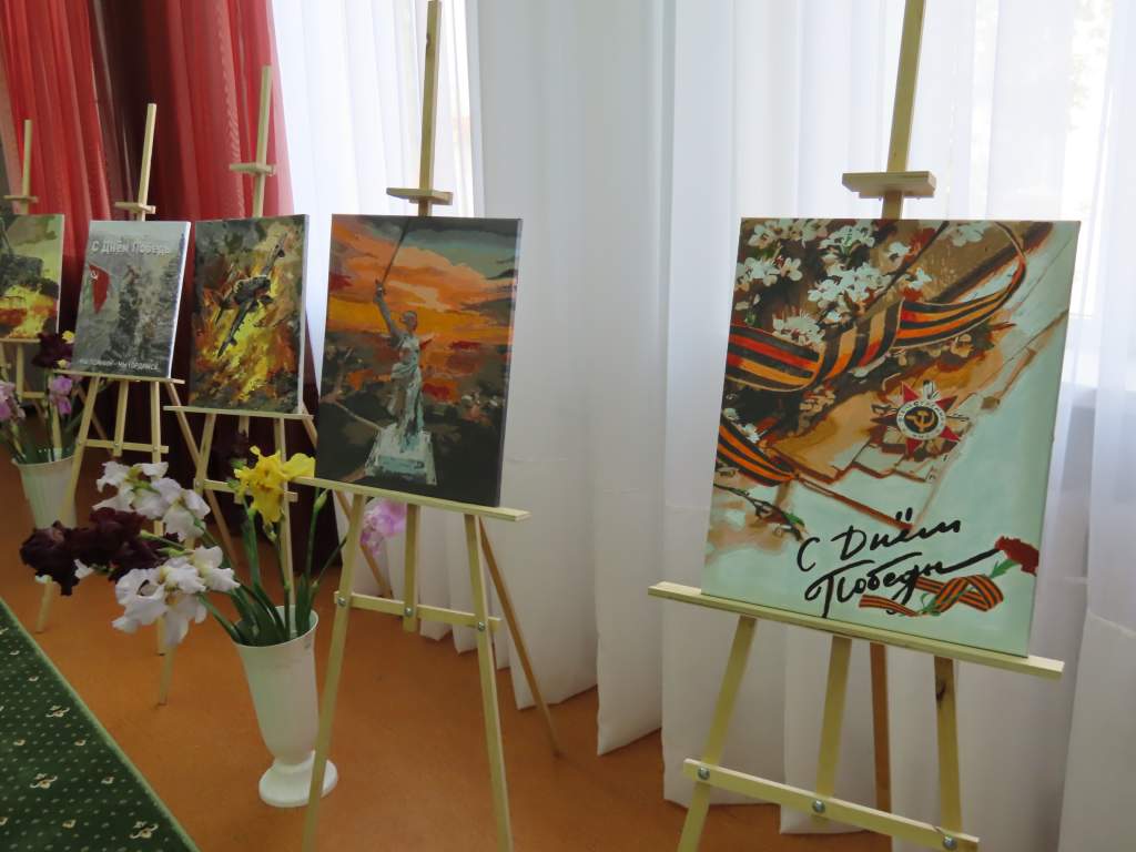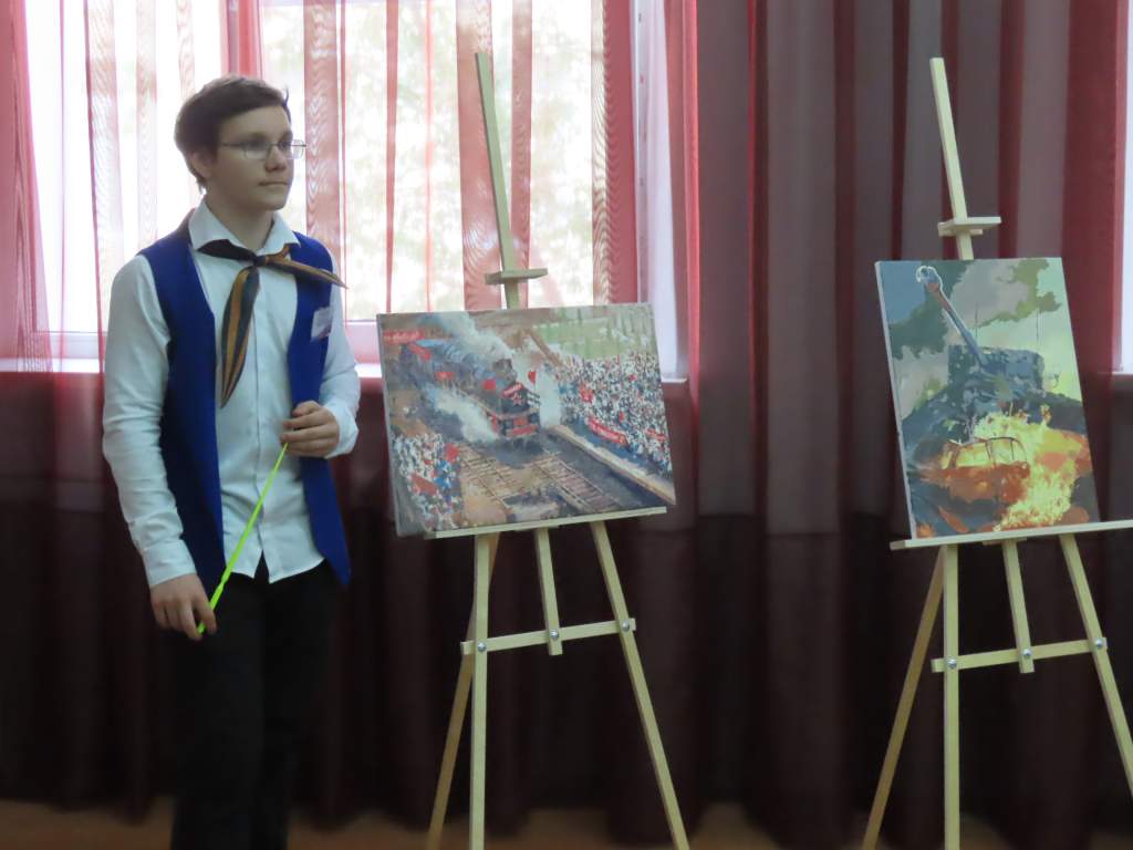 — представлены картины на тему Великой Отечественной войны, а также макеты военной техники, изготовленные школьниками.