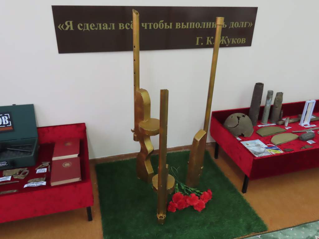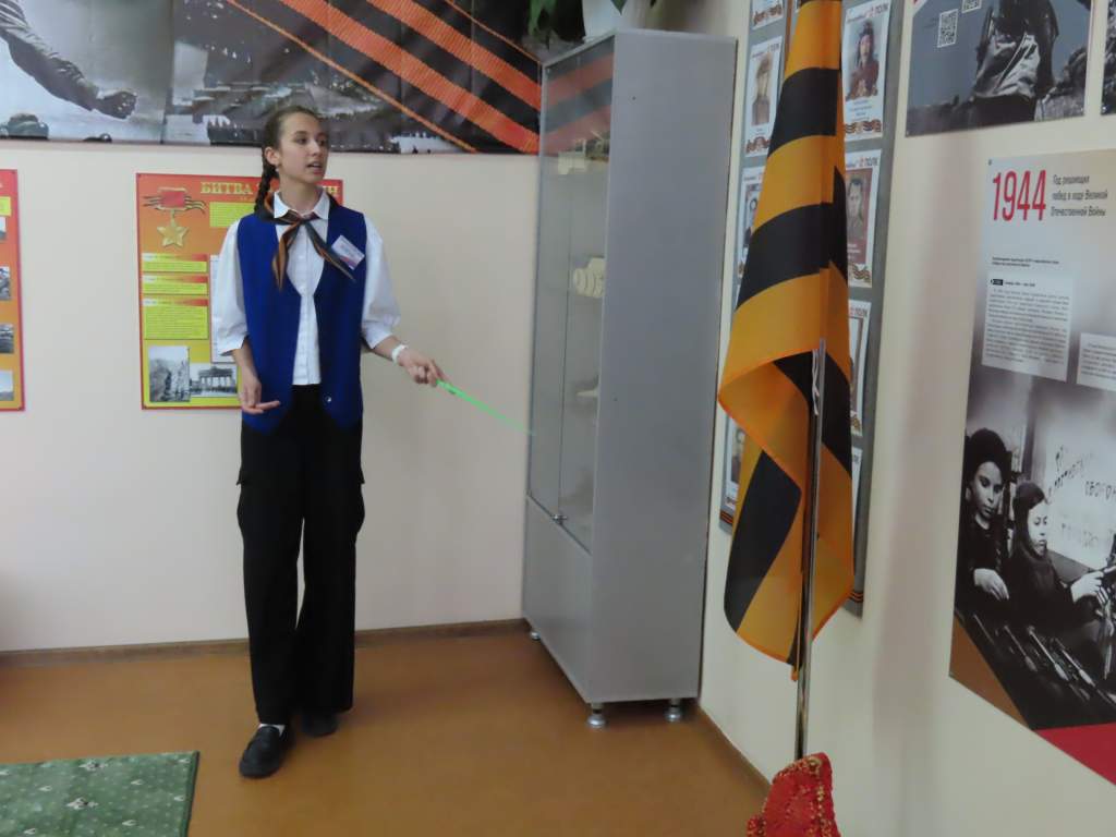 Затем школьники провели для гостей экскурсию по экспозициям музея, которые рассказывают о легендарных маршалах Великой Отечественной войны, ее решающих сражениях, боевых орденах и медалях. Среди экспонатов – осколки снарядов, патроны, каска, бинокль 1941 года и другие