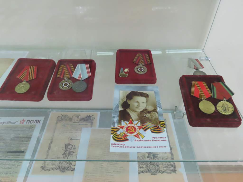На вечное хранение в школьный музей передали Знамя Победителей, которое своими руками изготовили педагоги, дети, их родители – на каждом его квадрате записаны имена родных и близких фронтовиков. Рядом – стена Бессмертного полка с фотографиями дедов и прадедов, под которой горит символичный Вечный огонь. На еще одной экспозиции – «Наше творчество»