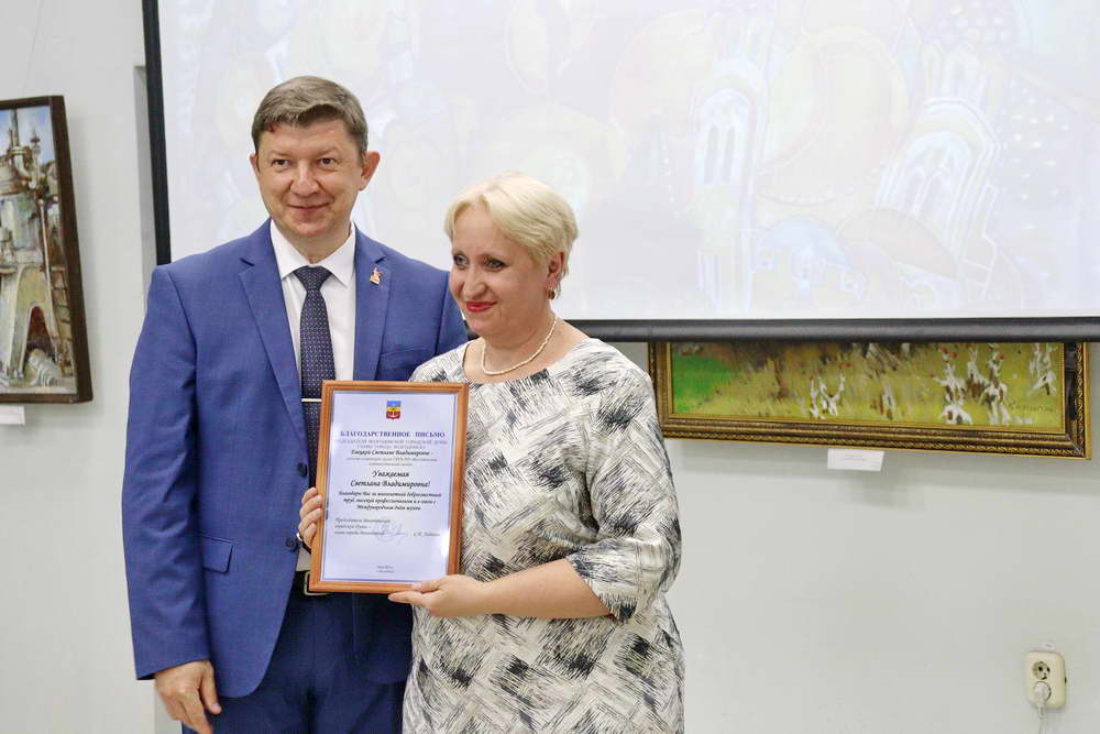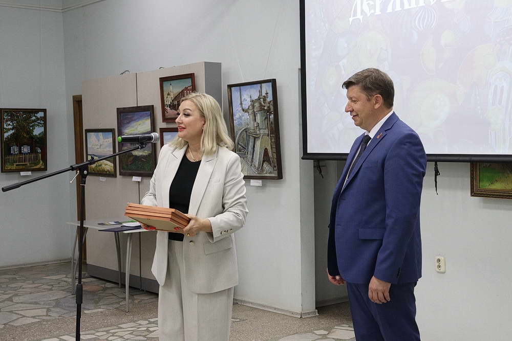 И эта выставка открылась в день 30-летия художественного музея Волгодонска. По этим двум поводам и собрались художники, их друзья и гости Волгодонска. Были выступления и поздравления и пожелания дальней плодотворной деятельности коллектива музея и, конечно, художников города. Среди гостей выставки и музея был председатель Волгодонской городской Думы, глава города Сергей Николаевич Ладанов, который поздравил коллектив музея с 30-летием и вручил грамоты сотрудникам музея.