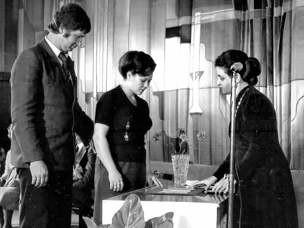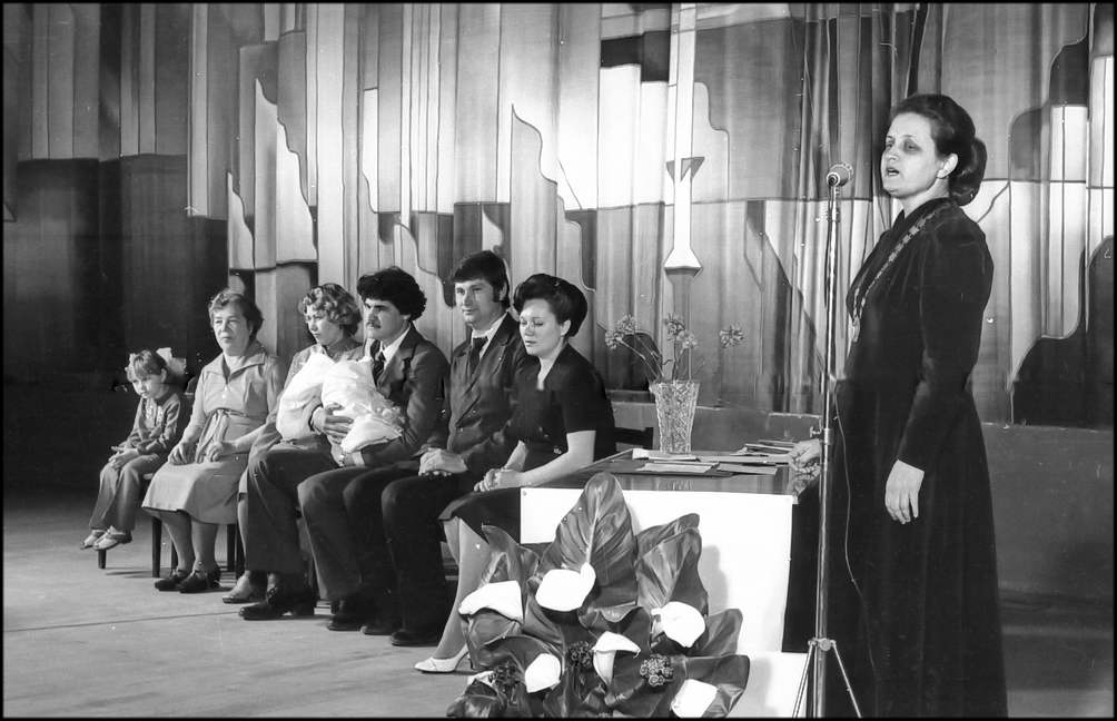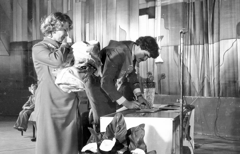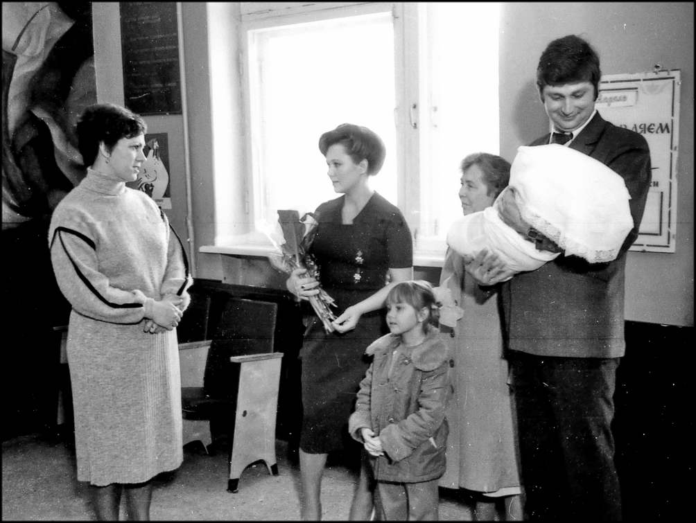 Документ о рождении дочери подписывают родители ребенка, почетные мама и папа, бабушка. Полноправной гражданкой Союза Советских Социалистических Республик стала Танечка Алейникова. В честь нее звучит гимн. Семью Алейниковых с рождением дочери поздравляет председатель исполкома В.А.Куликов . Он вручил родителям памятную мелаль «150-тысяч- ному жителю Волгодонска» и ордер на трехкомнатную квартиру.