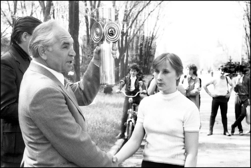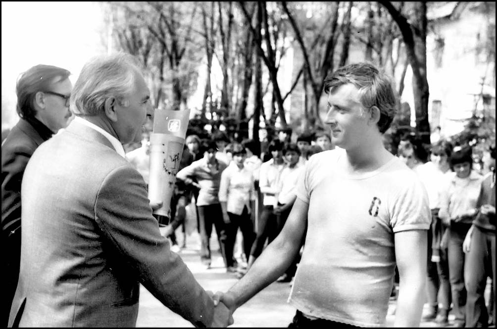 Редактор газеты «Волгодонская правда» И. М. Пушкарный вручил победителям — команде школы №7 — переходящий кубок за победу в легкоатлетической эстафете.