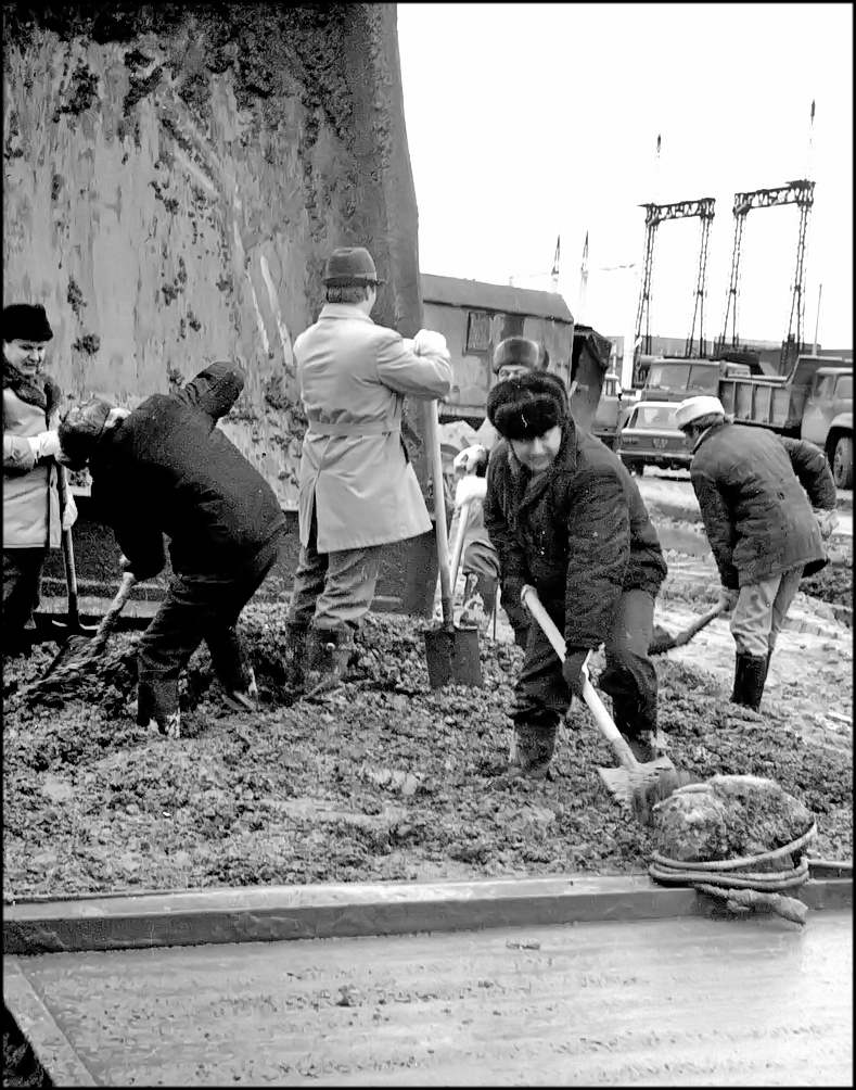 Настоящее состязание разгорелось между бригадами, которые возглавили члены бюро обкома И. А. Бондаренко и А. А. Исаев. По шесть машин бетона — около 20 кубометров — принимали они за полчаса работы. …