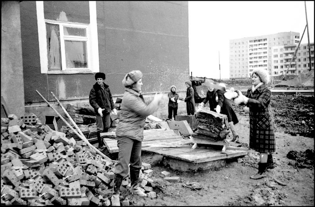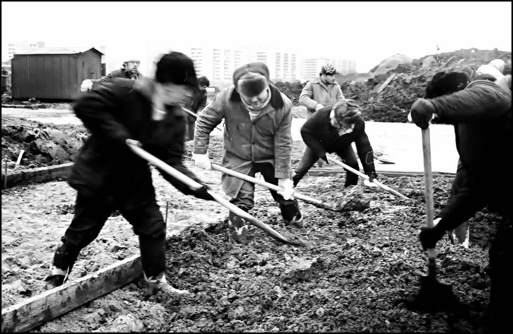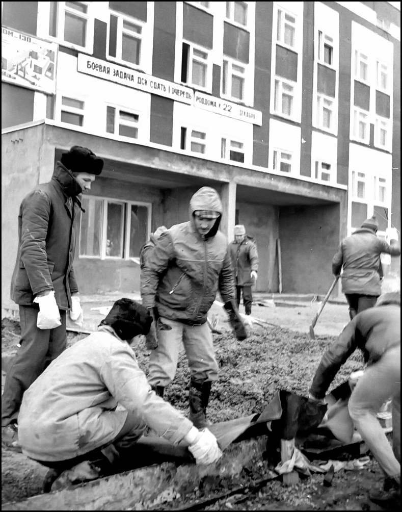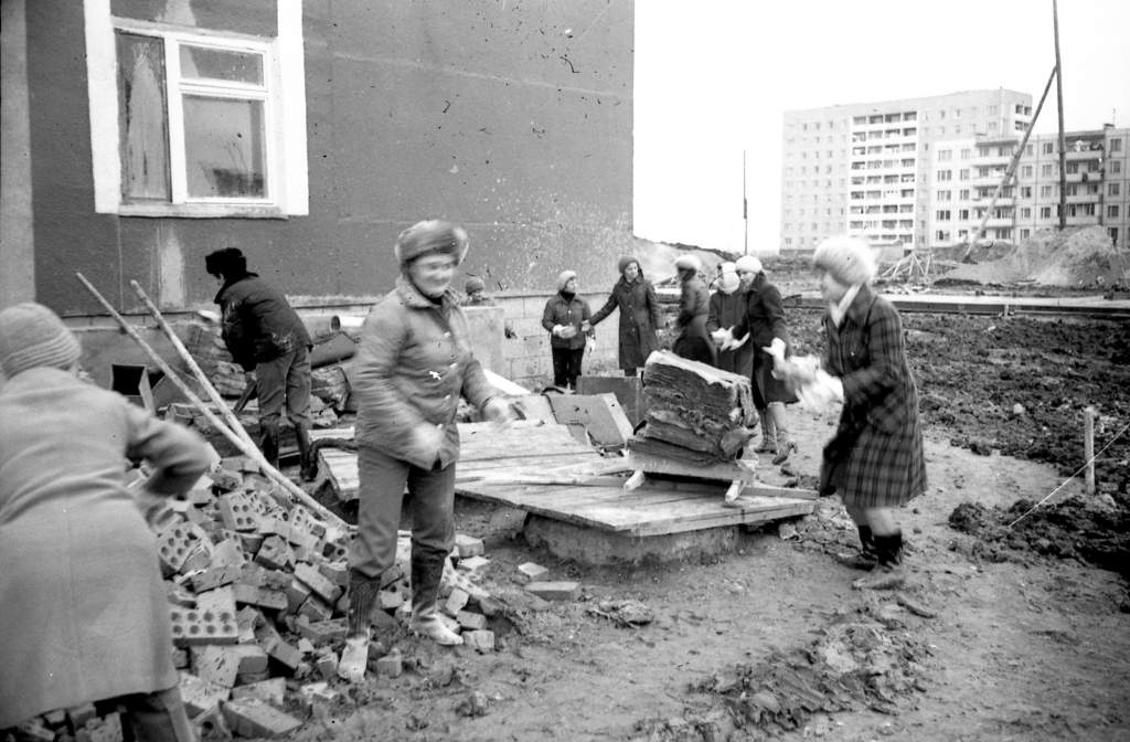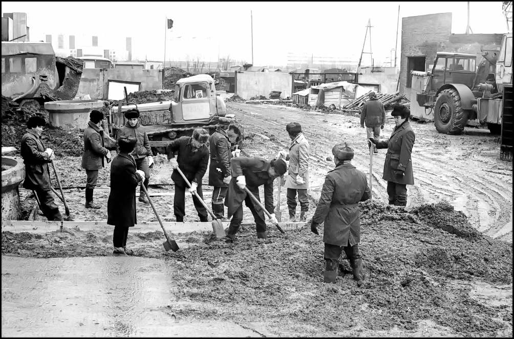Около ста работников культуры, возглавляемые заведующей отделом куль туры горисполквма 3. М. Новиковой, оказали большую помощь строителям. Выполняя роль подсобников, они складировали кирпич, помогали отделоч никам в устройстве керамзитового настила на полах, убирали территорию. С хорошим настроем, дружно трудились все. А когда подсчитали, то общин объем выполненных строительно — монтажных работ на ударной городской стройке 18 апреля равен четырем тысячам рублей.