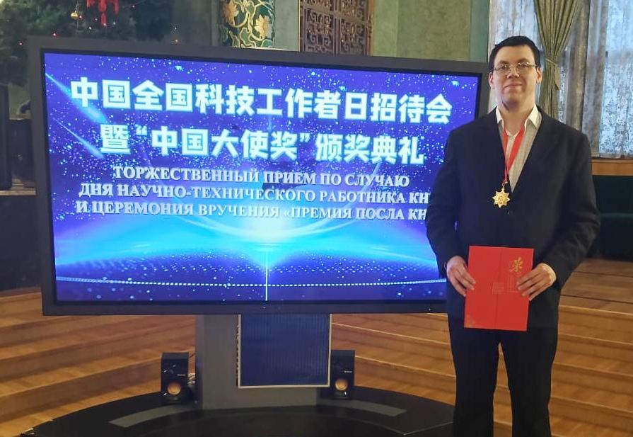 Премия была учреждена в 2020 году посольством КНР в РФ совместно с Российским союзом научных и инженерных общественных объединений (РосСНИО). Цель – поощрение выдающихся учёных и инженеров, внесших значительный вклад в развитие научно-технического сотрудничества между обеими странами. В 2025 году Премия Посла Китая проводилась по трем направлениям: искусственный интеллект, биомедицина и аэрокосмическая информация. На соискание премии поступило более 150 заявок. По итогам отбора лауреатами стали 24 специалиста. Среди них наш земляк, уроженец посёлка Рассвет Аксайского района, выпускник ЮФУ Дмитрий Гвалдин. Во время церемонии награждения помощник Президента России Андрей Фурсенко и Чрезвычайный и Полномочный Посол Китая в РФ Чжан Ханьхуэй лично поздравили лауреатов, подчеркнув важность укрепления двустороннего сотрудничества в сфере науки и технологий.
