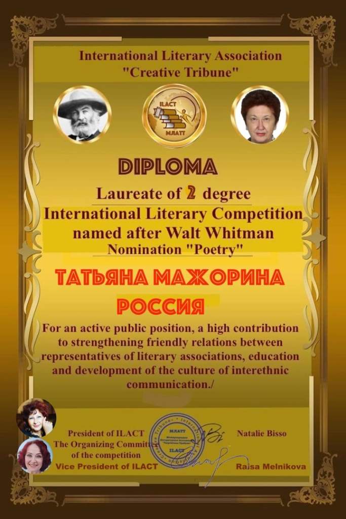 Волгодонский литератор Татьяна Мажорина стала лауреатом конкурса имени Уолта Уитмена