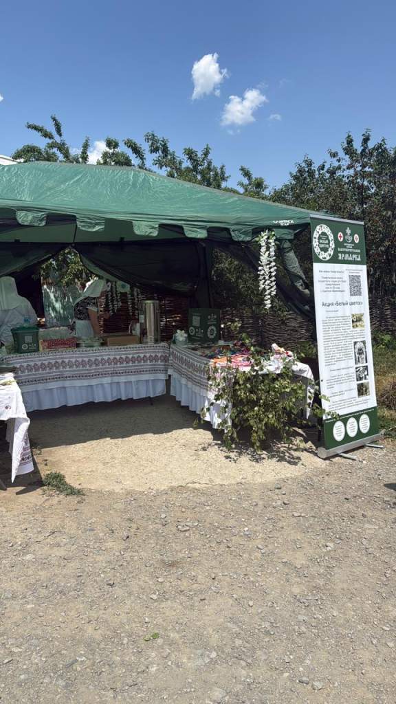 Акция «Белый цветок» — это благотворительная инициатива, которая направлена на помощь нуждающимся. Представительницы Сестричества Милосердия св. мч. царицы Александры, подготовились к фестивалю всего за неделю. Наготовили выпечки и наварили компота. Эти угощения предлагались посетителям фестиваля за символическую плату или добровольные пожертвования вместе с белыми цветками, о которых позаботились заранее, и колокольчиками с зелеными лентами — символом Троицы, которые предоставили организаторы фестиваля.