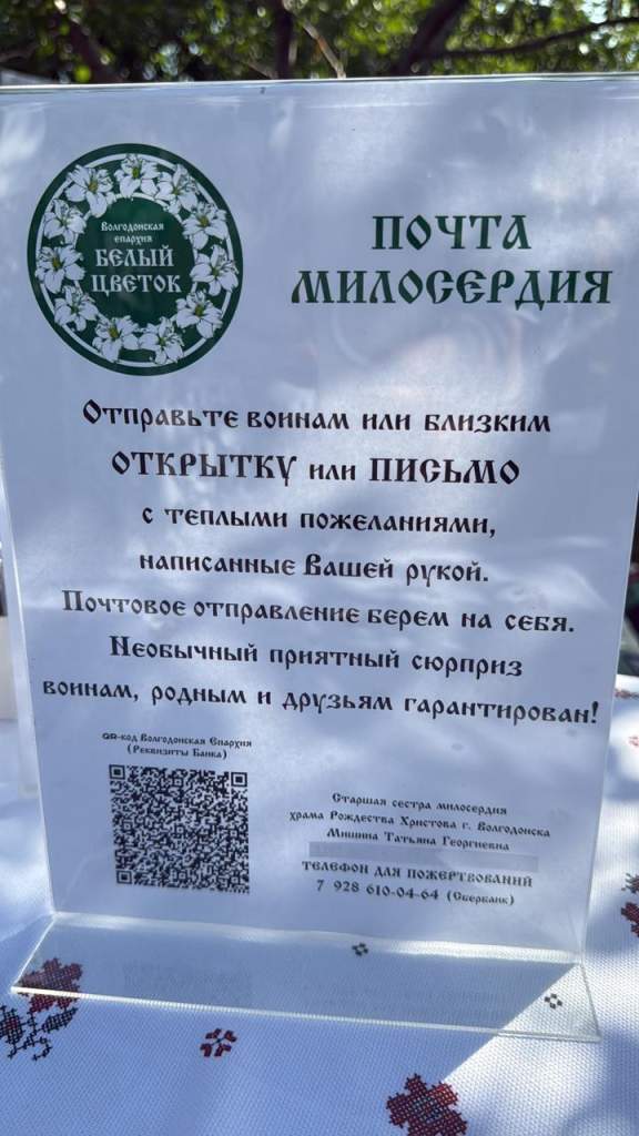 -Несмотря на то, что акция состоялась впервые, всё прошло успешно. Люди оказались очень отзывчивыми — подходили, охотно жертвовали. «Белый цветок» — это движение, в котором участвовала царица Александра, началось ещё до революции, и теперь мы его продолжаем и помогаем возродить здесь. Надеемся, что в нашем регионе это станет традицией, — сказала старшая сестра Сестричества Милосердия Волгодонского благочиния Татьяна Мишина.