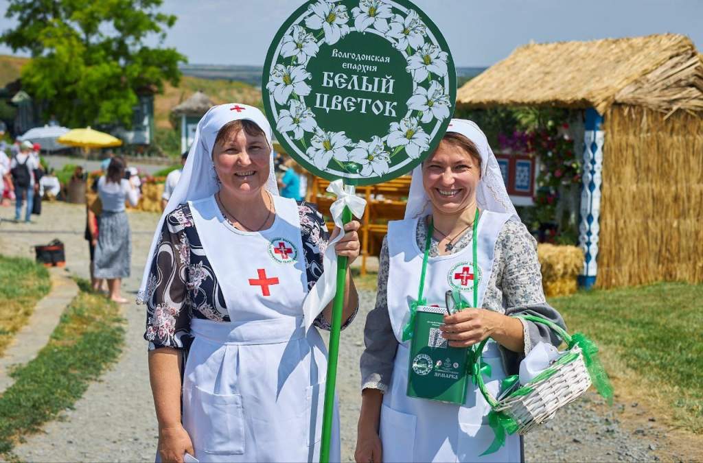 По благословению епископа Волгодонского и Сальского Антония, сёстры милосердия из нескольких сестричеств Волгодонской епархии — святой мученицы царицы Александры (Волгодонское благочиние), святых Жён-мироносиц (Усть-Донецкое благочиние), святой жены мироносицы Марии Магдалины (Сальское благочиние) и Флоро-Лаврского сестричества (Великокняжеское благочиние) — приняли участие в благотворительной акции «Белый цветок». Она состоялась в хуторе Старозолотовском во время XIV фестиваля «Золотовские купола» в День Святой Троицы. Это событие стало первым опытом для сестричеств и позволило собрать средства на социальные нужды епархии.