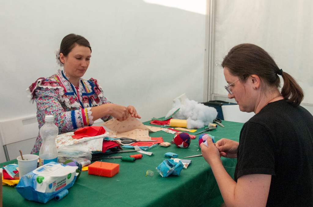 В составе волгодонской делегации находилась мастер декоративно-прикладного искусства ДК «Октябрь» Анна Сельдюкова. Она провела мастер-класс по изготовлению традиционного лоскутного мячика – игрушки, которая веками была частью русской народной культуры.