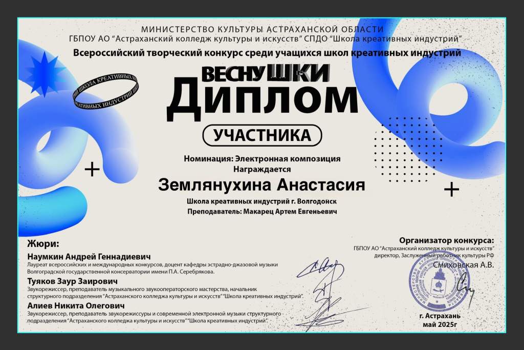 ️Юные таланты Школы креативных индустрий Волгодонска ярко заявили о себе на I Всероссийском творческом конкурсе среди учащихся ШКИ «ВеснуШКИ»! Наши студийцы, многие из которых делают лишь первые шаги в творчестве, представили город на престижной площадке и добились отличных результатов.