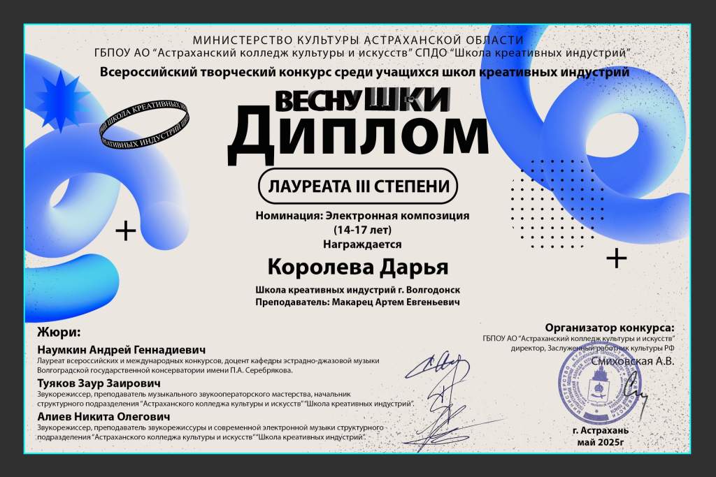 Школа креативных индустрий Волгодонска гордится своими студийцами и педагогами и желает им покорения новых творческих вершин.