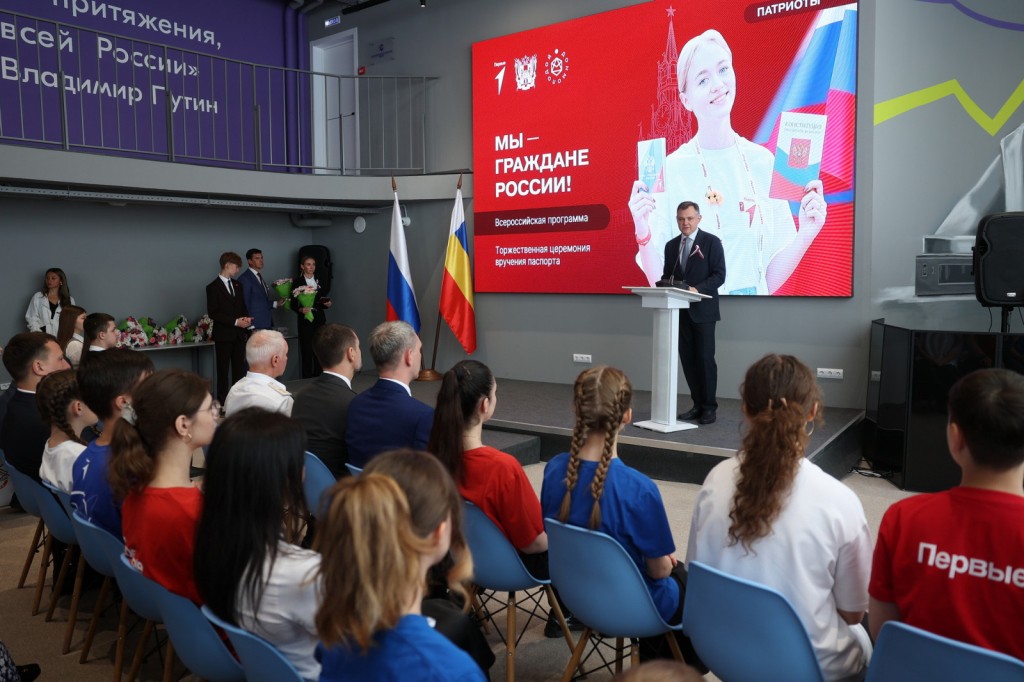 12 июня, в День России, в ростовском молодежном центре «ДонМолодой» состоялась торжественная церемония вручения паспортов граждан Российской Федерации талантливым ученикам школ и лицеев Донского края, которые, кроме того, активные участники регионального «Движения первых».