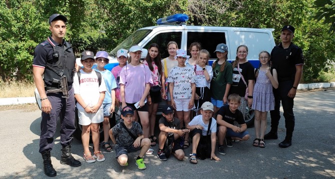Во время летних каникул сотрудники полиции посетили приходящий лагерь школы № 13. Экипаж ППС МУ МВД «Волгодонское» — лейтенант полиции Табриз Фарзалиев и младший лейтенант полиции Александр Шебанов — рассказали ребятам о патрульно-постовой службе полиции. Особый интерес у детей вызвал патрульный автомобиль, инспекторы показали его устройство, включили световую и звуковую сигнализацию. Юные горожане смогли почувствовать себя настоящим инспектором ППС, примерить бронежилет с защитной каской.