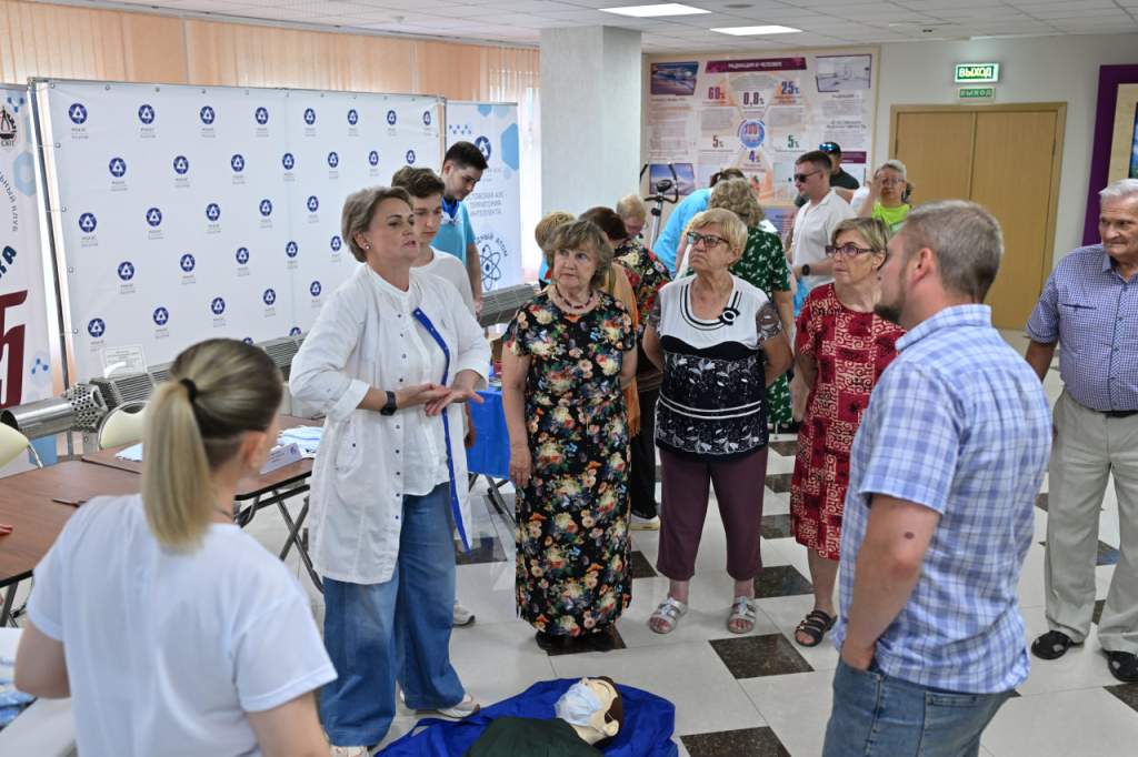 В информационном центре Ростовской АЭС один из мастер-классов представила заместитель главного врача БСМП, руководитель регионального общественной экологической организации «Зеленый город» и проекта «Школа первой помощи» Татьяна Недоступенко. Вместе со студентами ВИТИ НИЯУ МИФИ она объяснила, как правильного проводить сердечно-легочную реанимацию и перевязывать при ранениях.