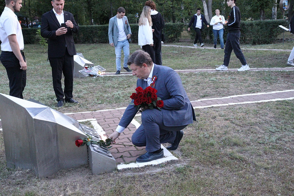 Начало памятных мероприятий было назначено на 4 часа. В тишине раннего утра в «Саду Памяти» молодые люди города зажгли множество свечей, создавая трогательную картину живого огня, символизирующего память о погибших. Каждый огонек – это молчаливое напоминание о невосполнимых потерях, о страданиях и мужестве тех, кто боролся за свободу Родины.
