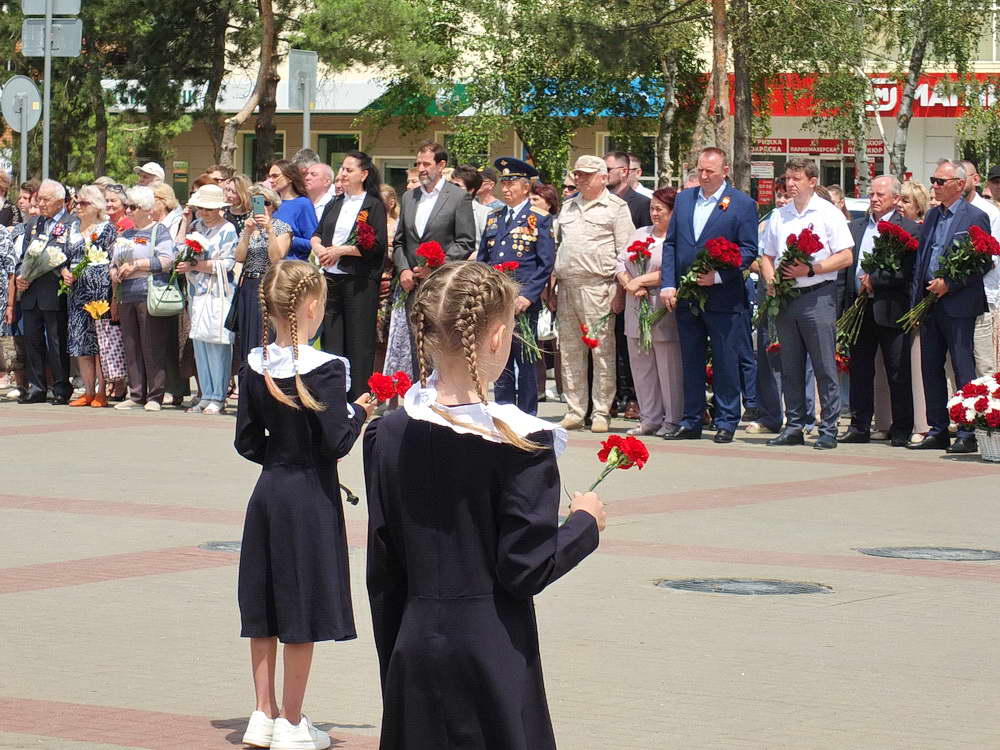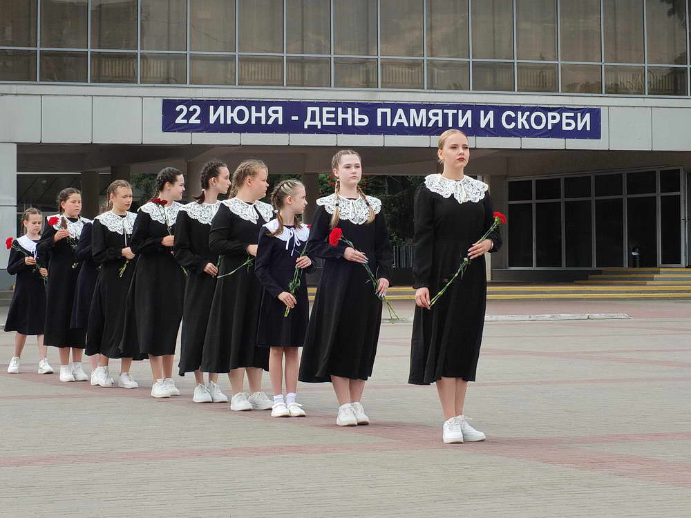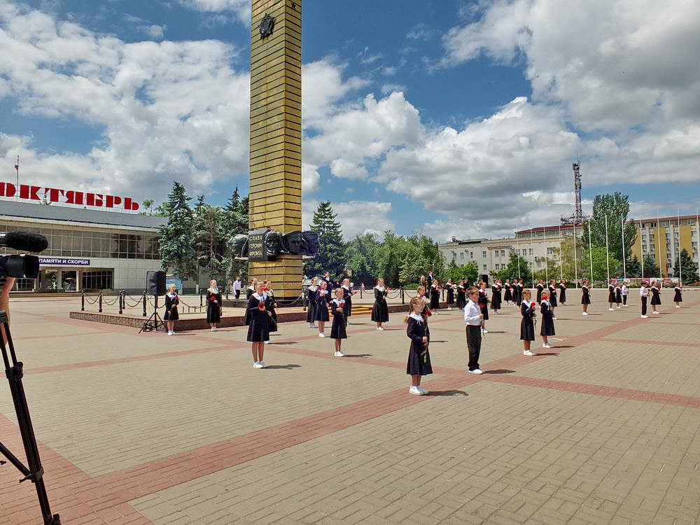 Участники митинга возложили цветы к стеле «Победа» — монументу, символизирующему грандиозную победу советского народа над фашизмом, и к памятнику детям войны. Многие не могли сдержать слез. В 12 часов 15 минут, вместе со всей страной, площадь Победы на минуту замерла в минуте молчания, отдавая дань памяти погибшим. Это был момент единения, когда вся страна вспоминала о невыразимых страданиях, о героизме и мужестве тех, кто защищал Родину.