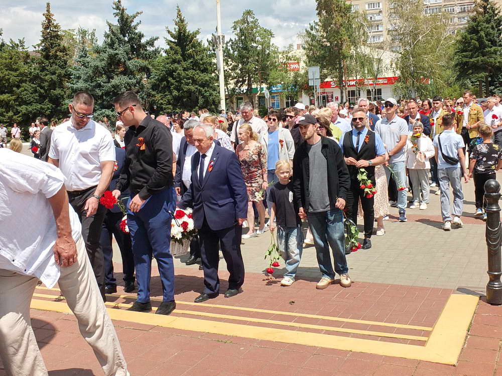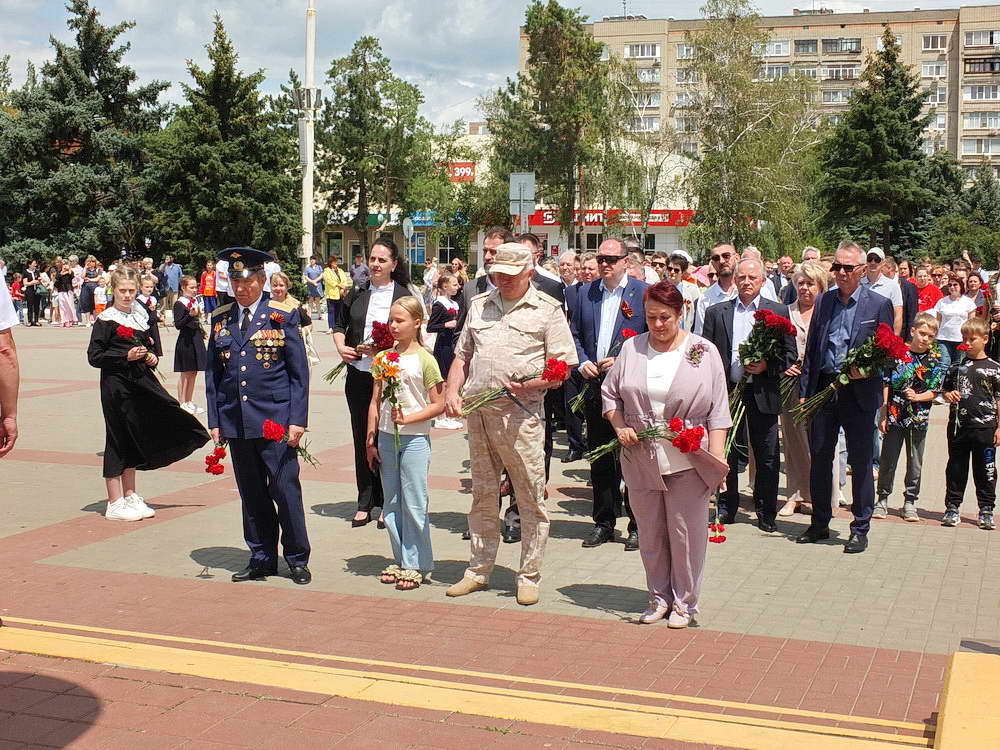 Глава Администрации города Юрий Мариненко, выступая перед собравшимися, обратил внимание на важные задачи современного поколения. Он подчеркнул необходимость хранить память о Великой Отечественной войне, гордиться подвигом советского народа, чтить память погибших и передавать эту память будущим поколениям. Юрий Мариненко также отметил необходимость предотвращения возрождения фашизма и противостояния попыткам переписать историю. Он подчеркнул, что эта задача сегодня успешно решается нашими бойцами, участвующими в специальной военной операции; их мужество и самоотверженность являются прямым продолжением подвига героев Великой Отечественной войны.