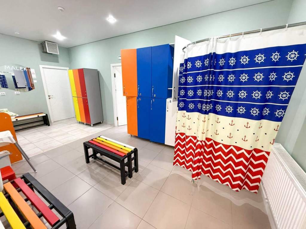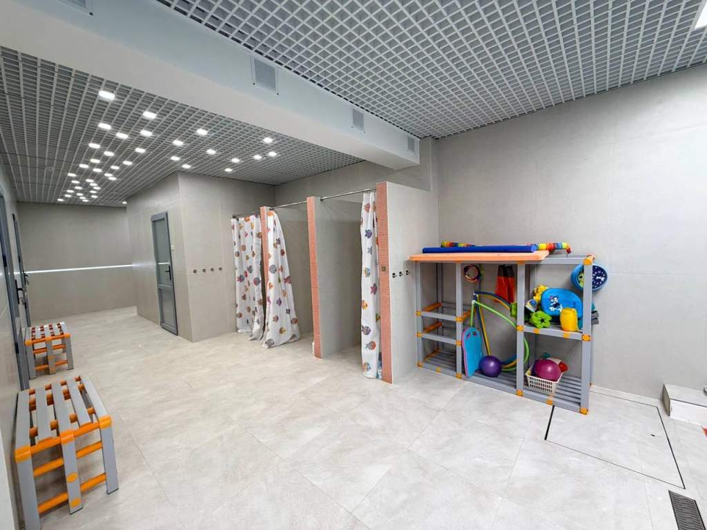 В новой части бассейна, как и в «малышковой», устроены теплые полы и приточно-вытяжная вентиляция, оборудованы раздевалки и душевые – с учетом роста маленьких пловцов, чистейшая вода всегда имеет температуру от 31 до 33 градусов.