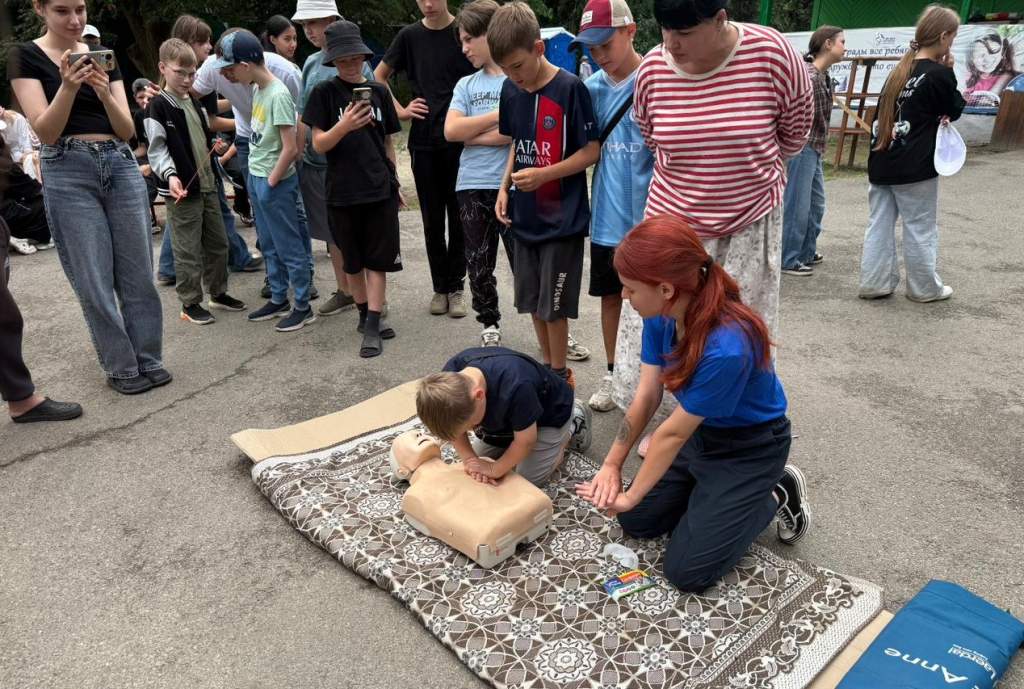 На практике освоили алгоритм сердечно-легочной реанимации, а еще поработали с ранцевым огнетушителем и гидравлическим спасательным инструментом. В завершении занятия вожатые «Ивушки» под контролем сотрудников экстренных служб провели тренировку при получении сигнала беспилотной опасности.